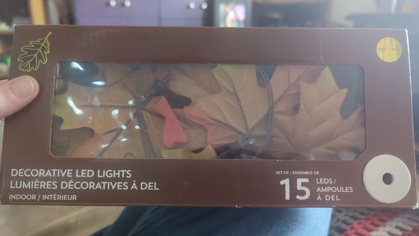 Add a touch of autumn charm to your home with these decorative LED lights! The box includes 15 LED bulbs shaped like fall leaves. Perfect for indoor use to create a cozy and inviting atmosphere...or a cute little altar edition ๐