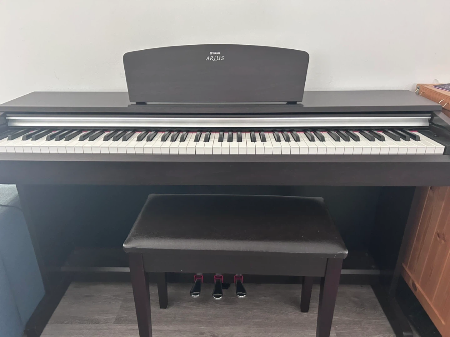 37Selling a Yamaha Arius YDP-S41 digital piano in great condition! It comes with the matching bench. Perfect for beginners or experienced players alike. The piano has a beautiful sound and touch, making it a joy to play. If you're interested, send me a message!