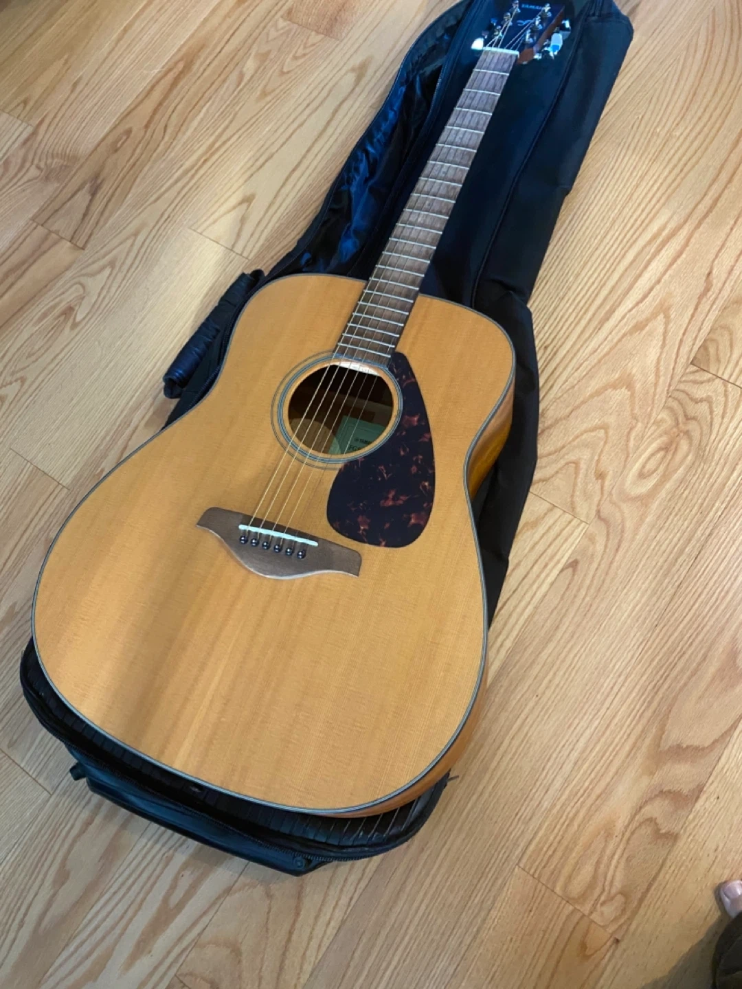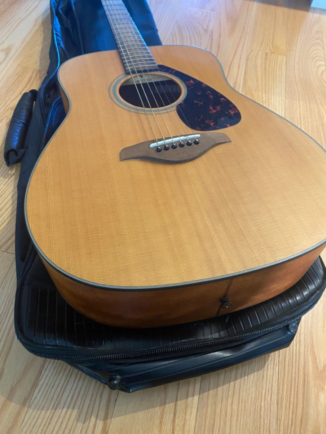 63Selling a Yamaha FG800M acoustic guitar. It's in good condition and comes with a black carrying case. Great for beginners or experienced players alike! Asking 180$ included carry bag.