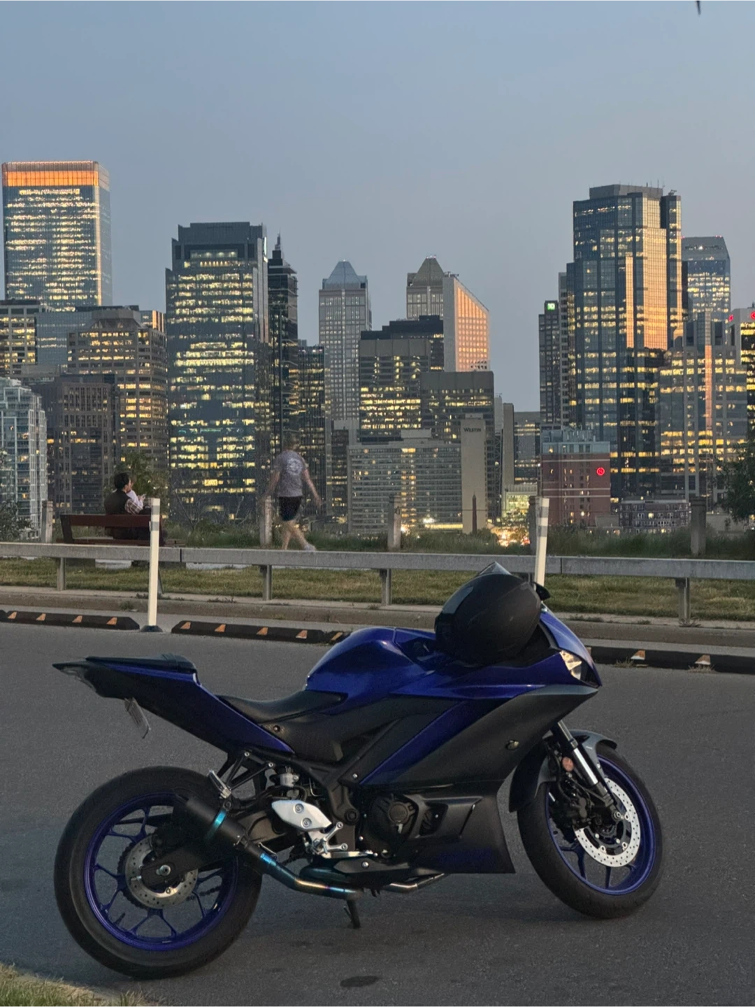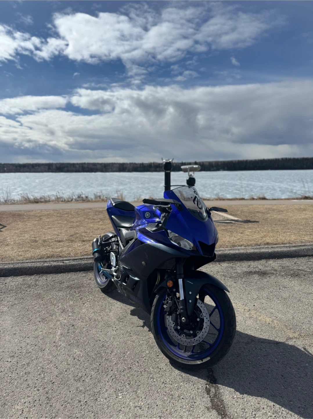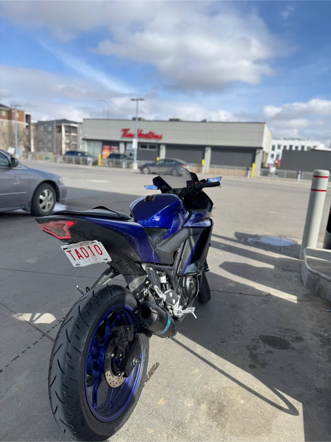 Yamaha motorcycle in blue, perfect for getting around town 2023 Yamaha r3 I am the first owner this was a amazing starter bike for me and I still ride it because of how much fun it is but sadly I have to part ways due to financial reasons, I’m hoping to find a good second owner for it 6k firm Only cons are that it has frame damages and no licence plate bracket Mechanically flawless all maintenance are up to date even tires Has after market turn signals total cost $500+ Has aftermarket full titanium exhaust $900+ Aftermarket suspension $1200 I also still have stock exhaust and stock mirrors in good condition I will trade for either a car or a talaria Komodo, stark varg, 600cc or higher or a super moto