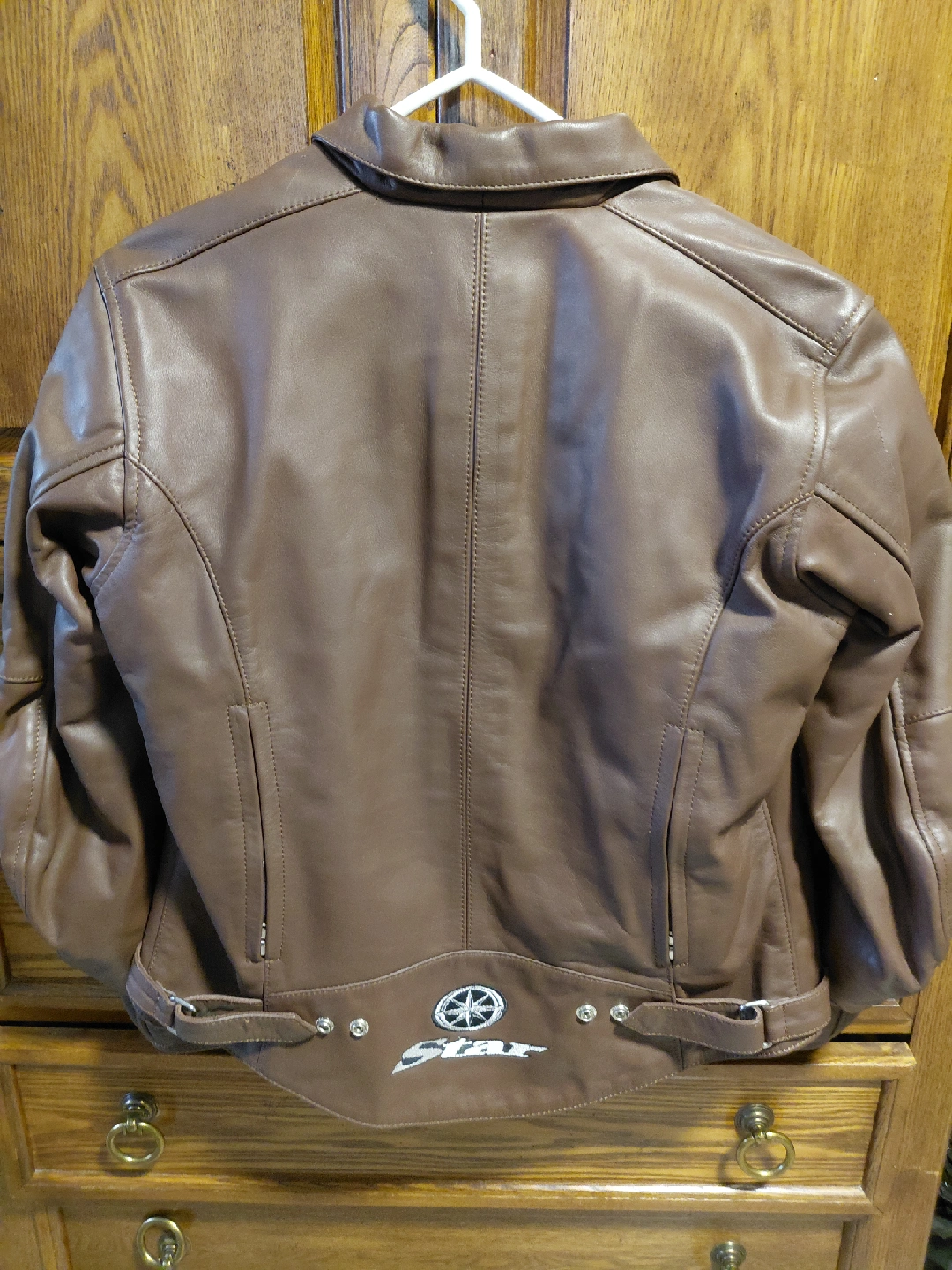 60Here's a stylish Yamaha Star leather jacket in a lovely brown colour! It's a size M and features a unique design with the Yamaha Star logo. The jacket is made of leather and has a pink quilted lining, making it both fashionable and comfortable. Perfect for any motorcycle enthusiast! im am open to offers