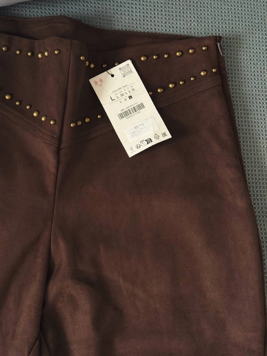 Dark brown studded flared pants Zara, size L