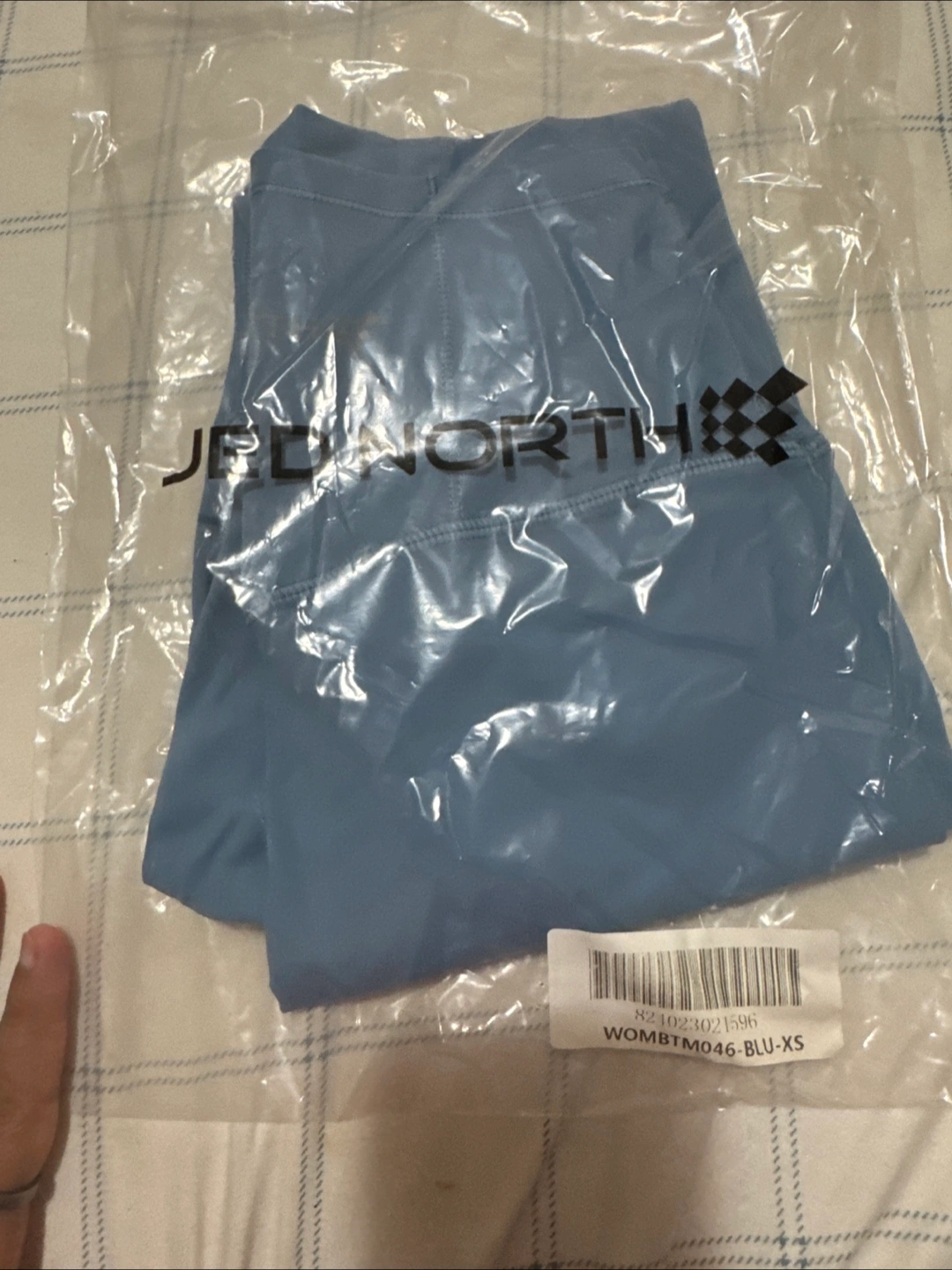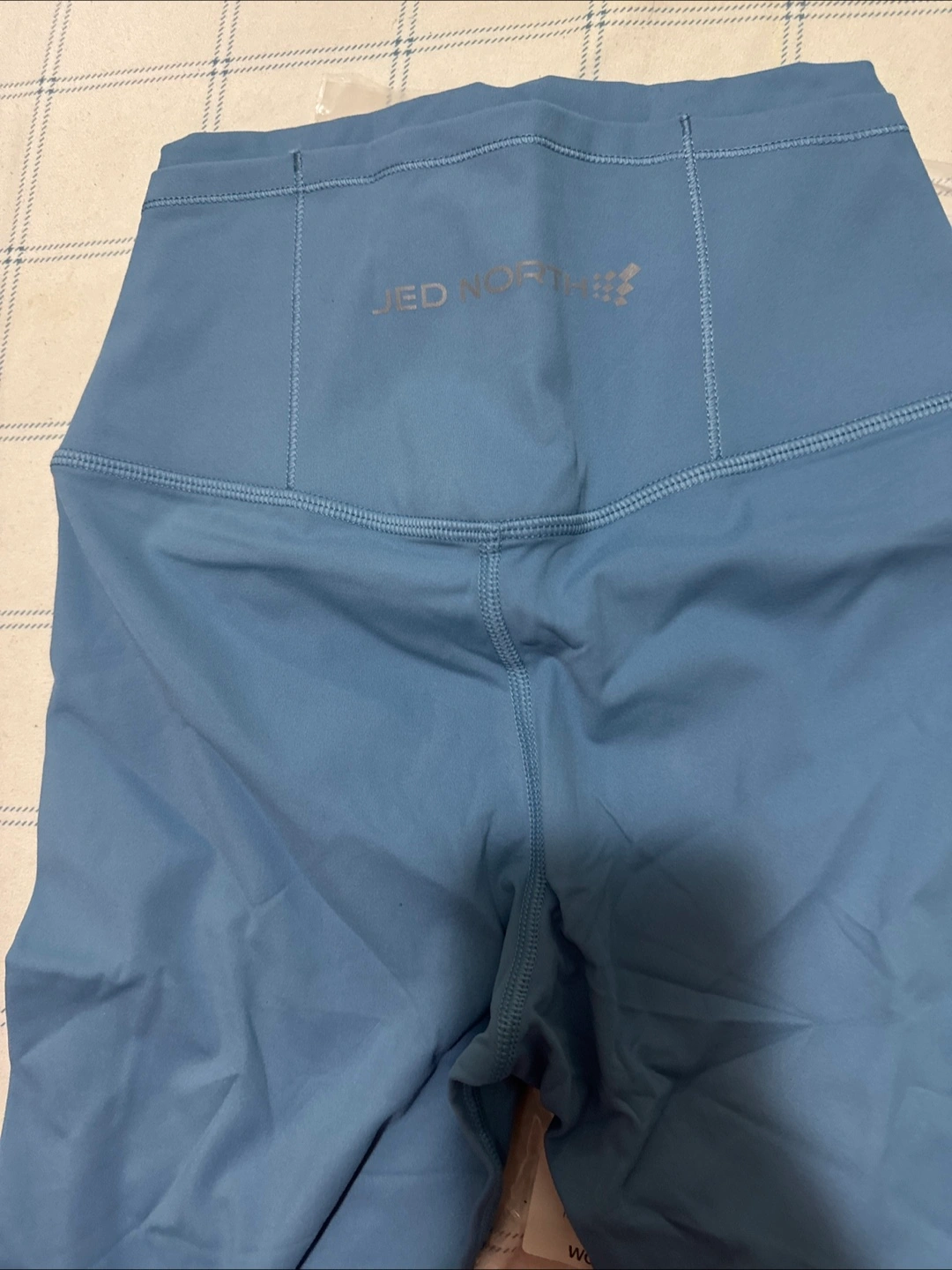 These are blue leggings from Jed North. They're size XS. The material feels soft and stretchy. Perfect for workouts!