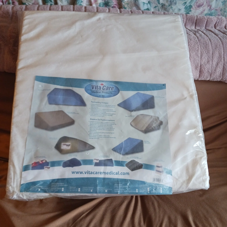 Vita Care white large body wedge, designed for head, back, or leg elevation. Still in plastic