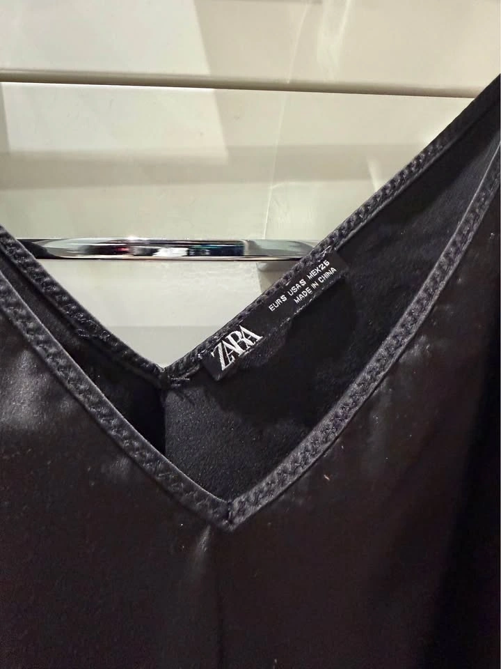 Zara Black Satin Effect V-Neck Cami - Size Small