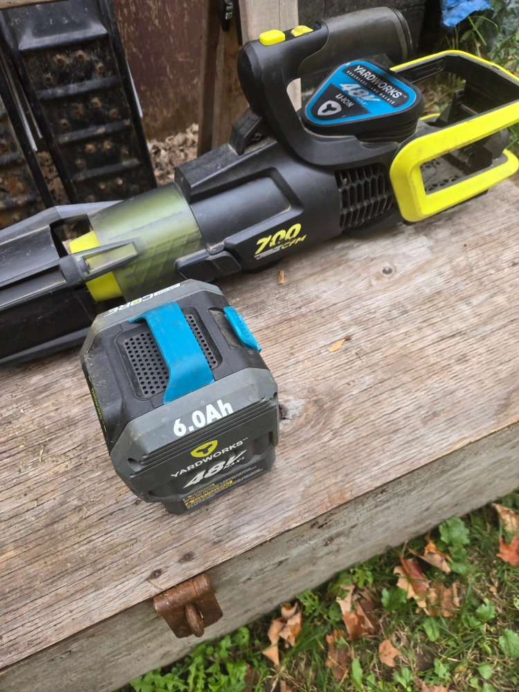 15Selling a Yardworks 48V cordless blower. It comes with a 6.0Ah battery. This is a great tool for keeping your yard tidy!