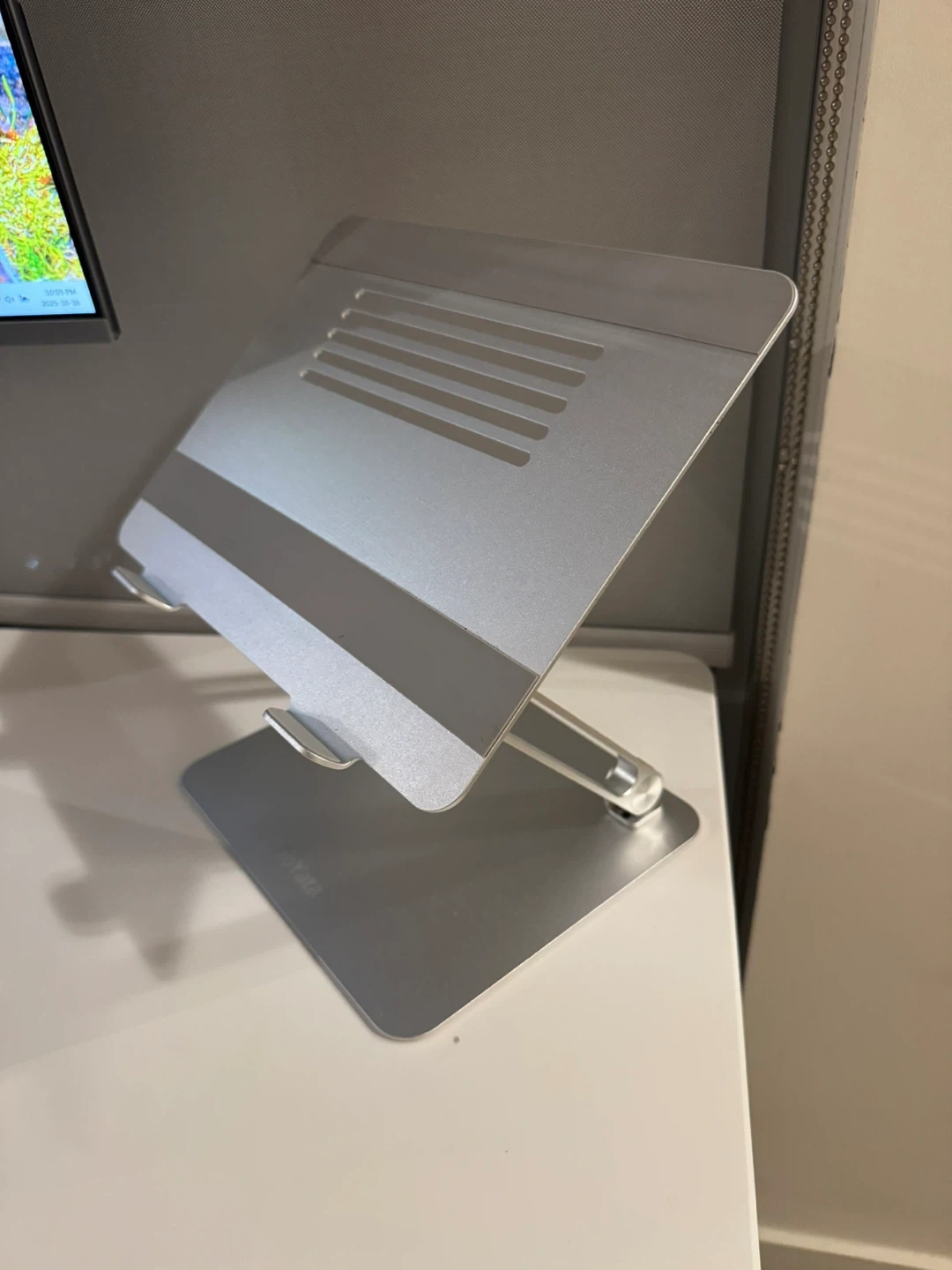 Selling a Yata laptop stand in silver. It's in great condition and ready to help elevate your workspace!