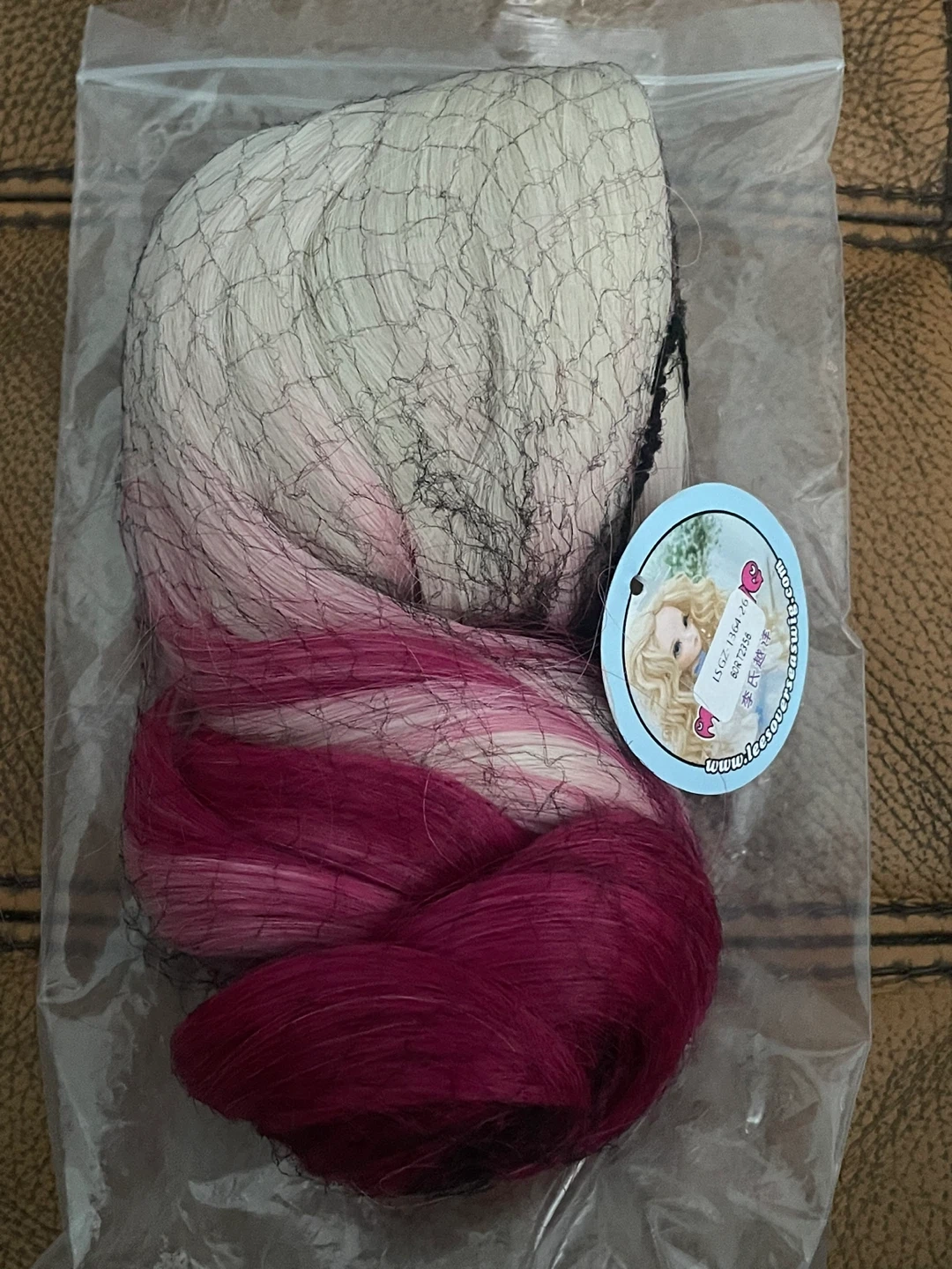 This doll wig features a stylish ombre effect, transitioning from light pink to a deep burgundy. It comes pre-netted for easy application. Perfect for customizing your favourite dolls or for crafting projects!