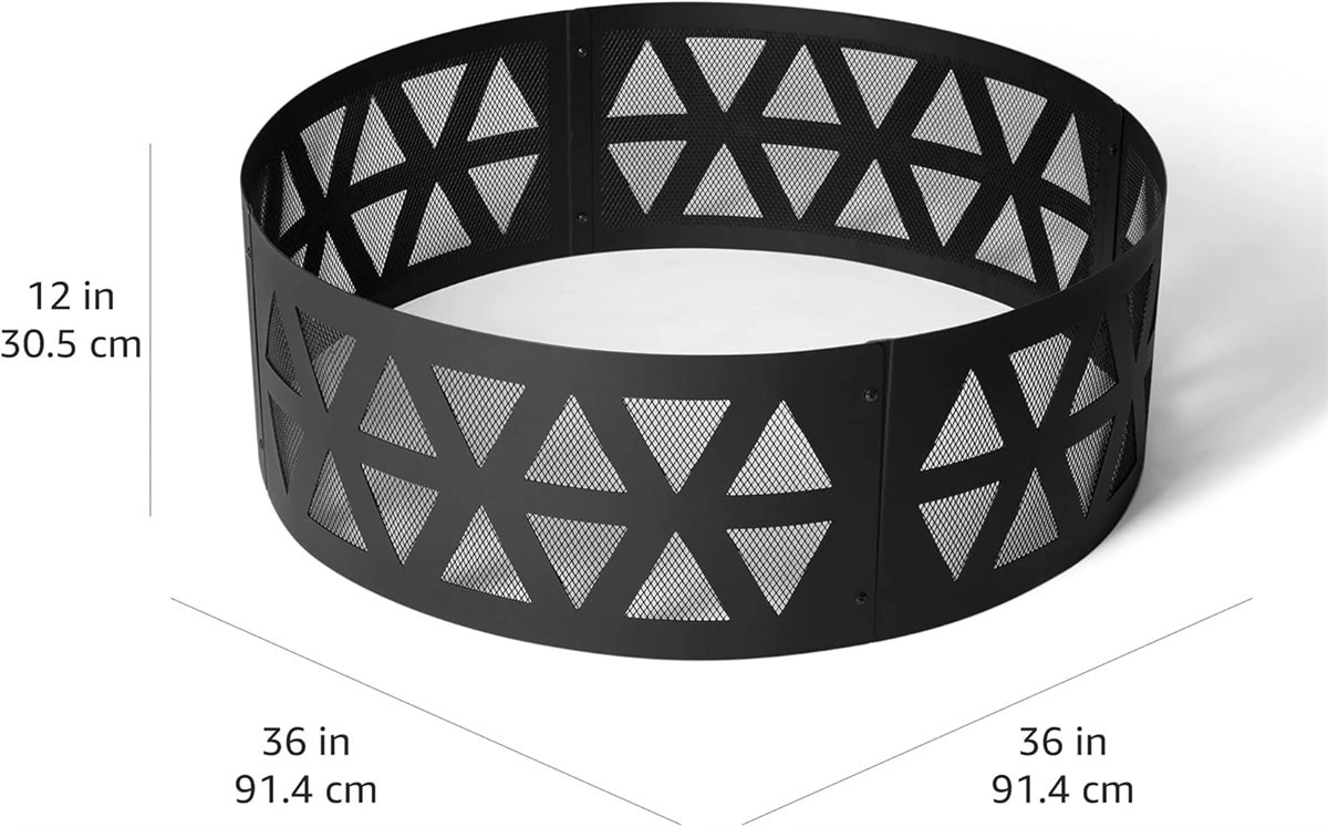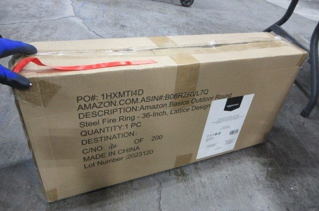 Selling a brand new Amazon Basics 36-inch steel fire ring, still in its original packaging! This outdoor round fire ring features a lattice design and is perfect for adding a cozy touch to your backyard or patio. It measures 36 inches in diameter and 12 inches in height, making it a great size for gatherings. The lot number is 2023120.
