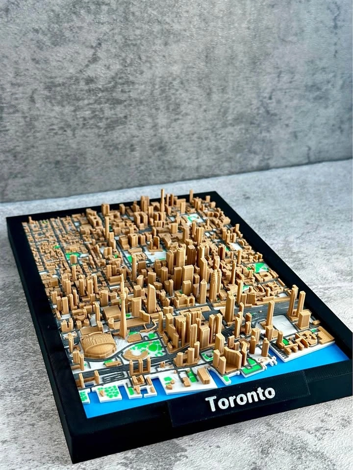 Detailed 3D printed map of Toronto. A unique piece for home or office decor, and a great gift for anyone who loves the city. Other sizes and colours available. 7 inches – $30, 9 inches – $40, 11 inches – $50. Material: High-quality 3D PLA (Bambu Lab). Pick-up: 30 Shore Breeze Drive, Toronto.