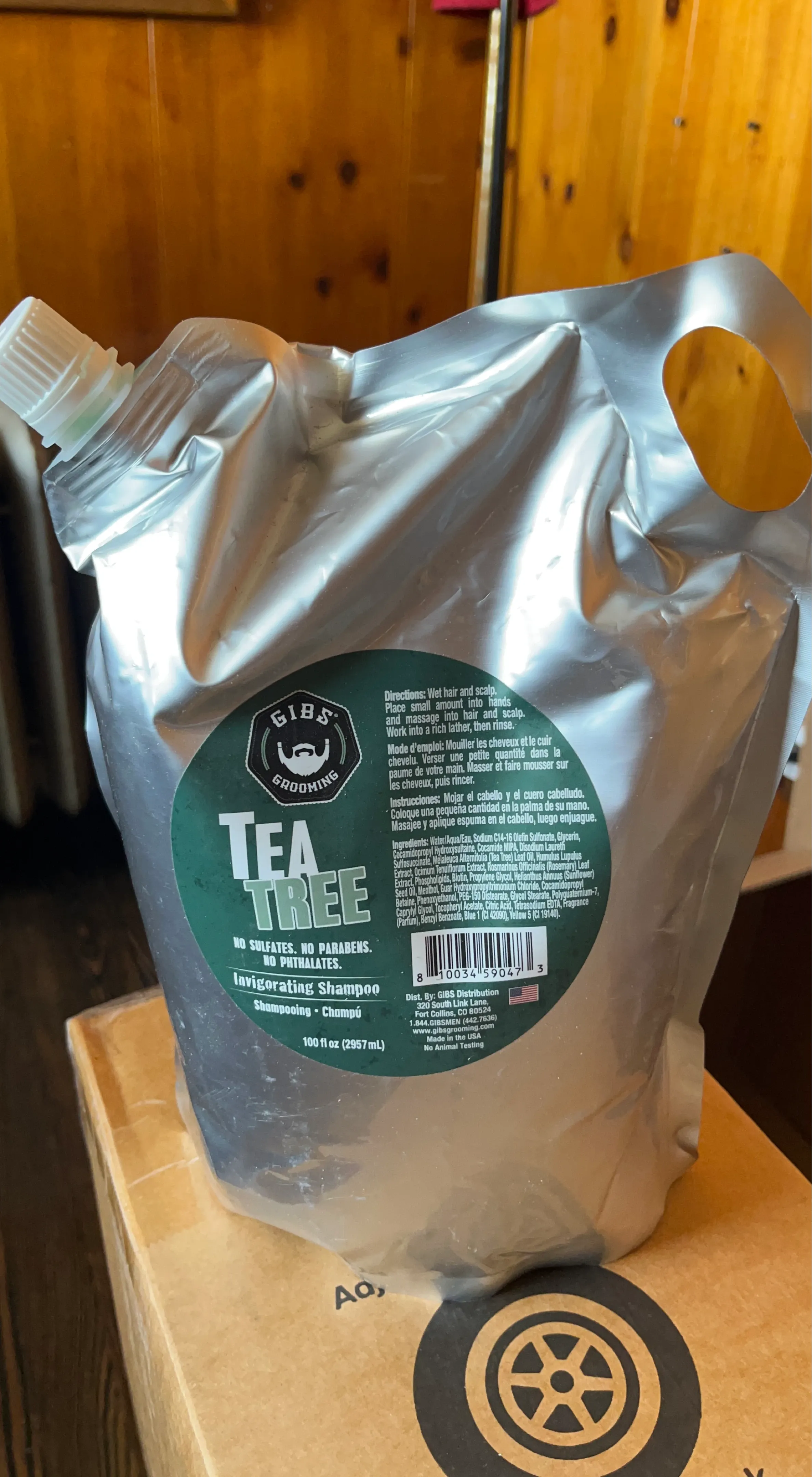 GIBS Grooming Tea Tree Invigorating Shampoo. No sulfates, parabens, or phthalates. 100 fl oz (2957mL) size. Made in the USA with no animal testing.