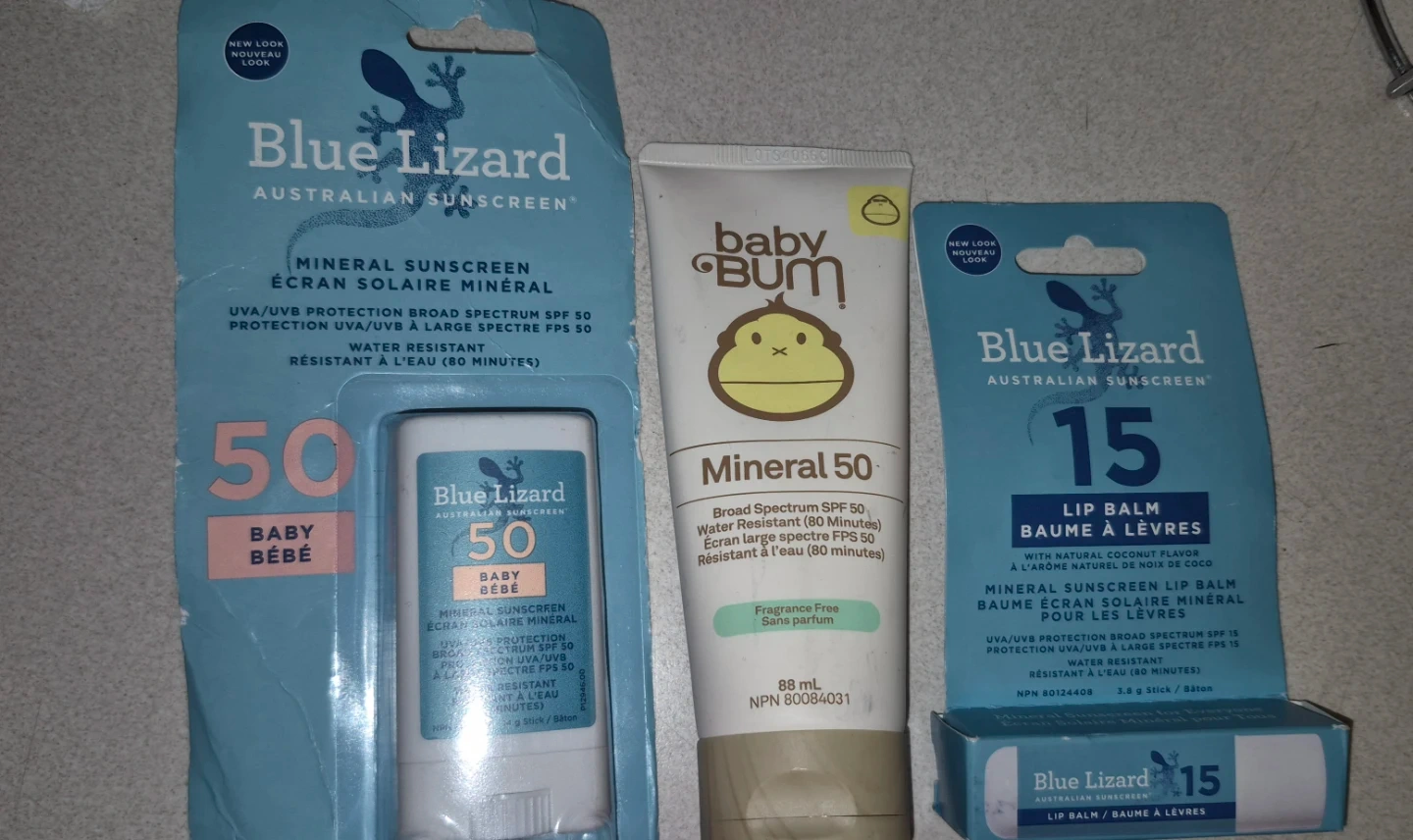 Baby Bum Mineral 50 Sunscreen in a fragrance-free formula. It's broad spectrum SPF 50 and water resistant for 80 minutes. This tube contains 88ml of product. Mineral sunscreen for everyone!, all 3 brand new not opened , dates are good .