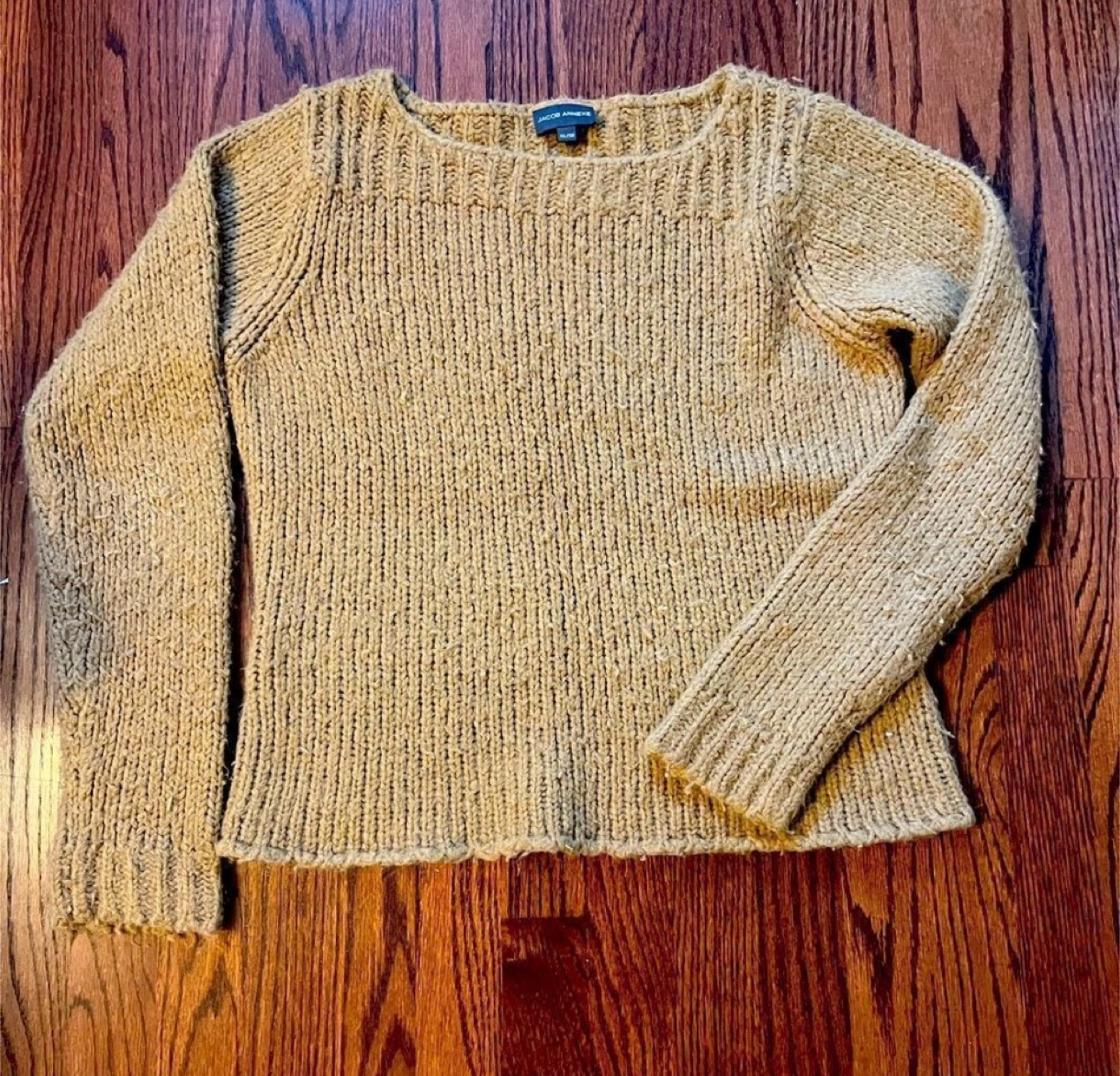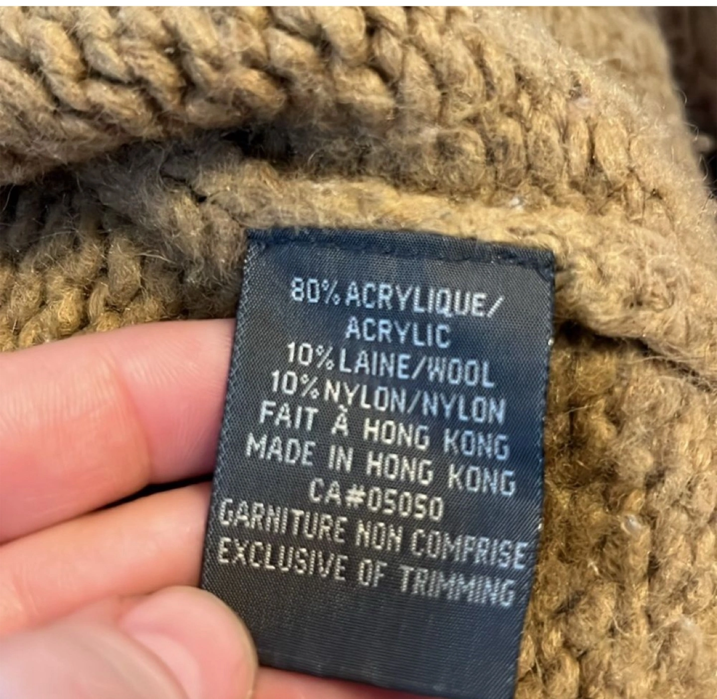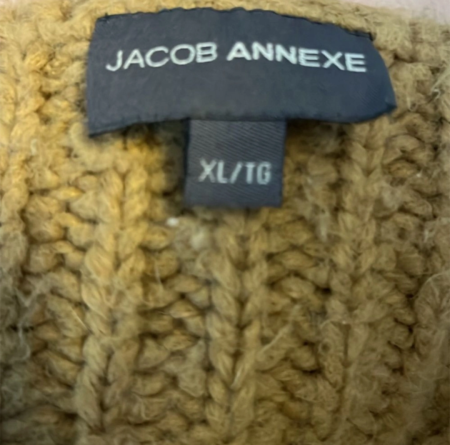 Cozy Jacob Annexe knit sweater, perfect for chilly days! It's an extra-large size and made of 80% acrylic, 10% wool, and 10% nylon. The colour is a lovely neutral tan.
