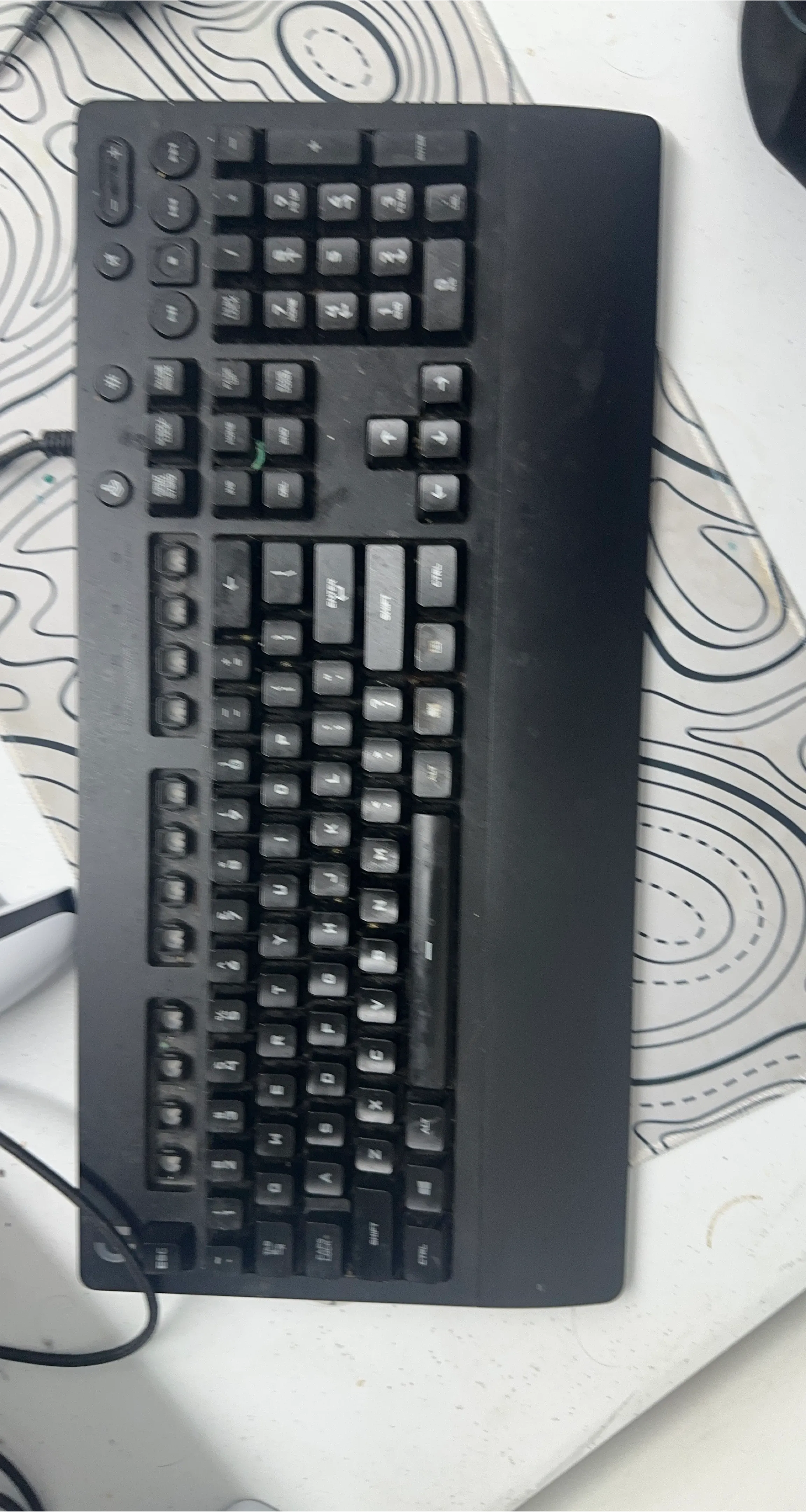 This is a black Logitech gaming keyboard. It's a wired keyboard with a full number pad and media controls. It's a reliable choice for gaming and everyday use!