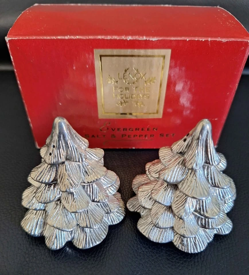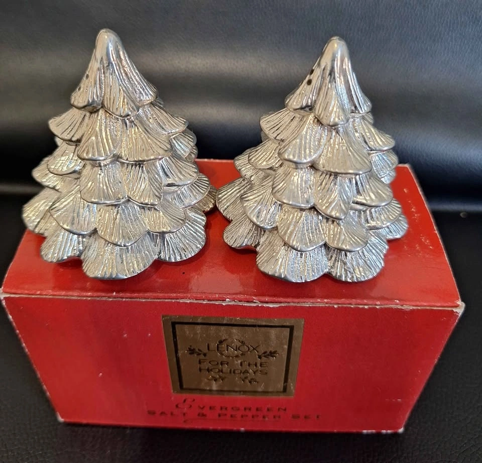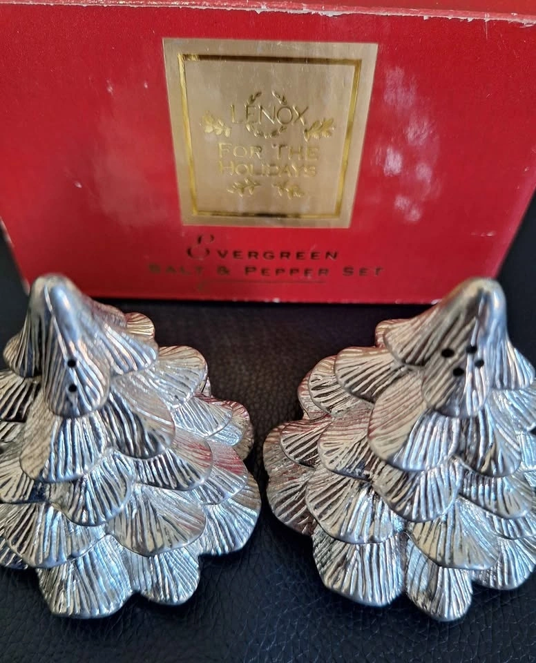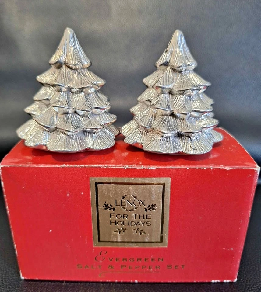 NWB Lenox Pewter Salt & Pepper Shakers - Christmas Trees