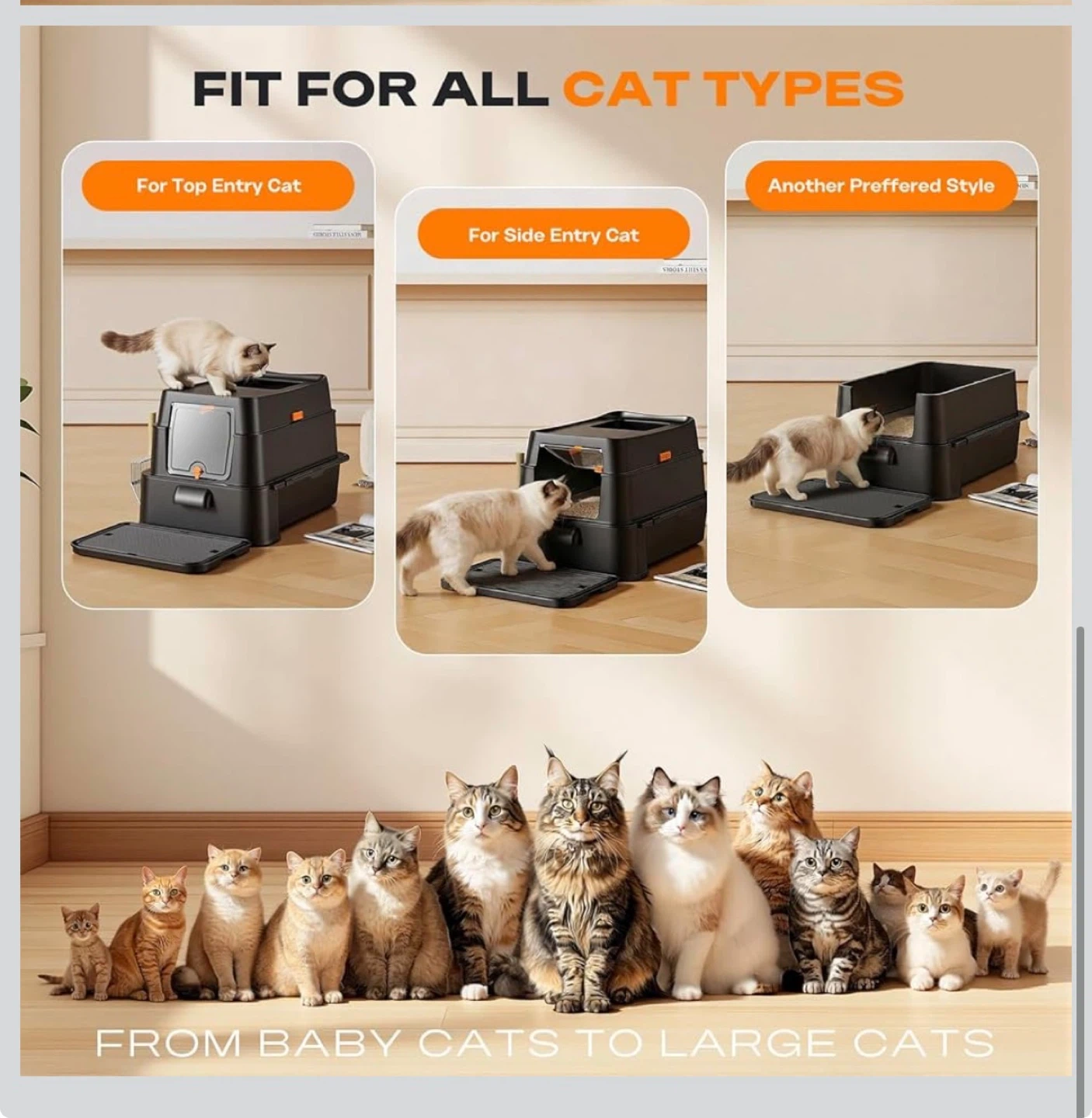 XXL Stainless Steel Cat Litter Box with Drawer, Extra Large Box for Cats, Enclosed Metal Kitty Litter Box with Litter Scooper, Odor-Urine-Proof, Non-Sticky, Easy Rinse Cleaning