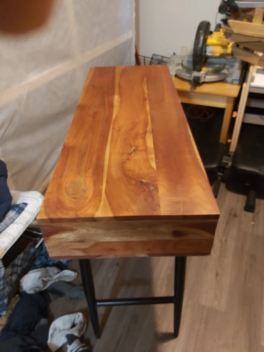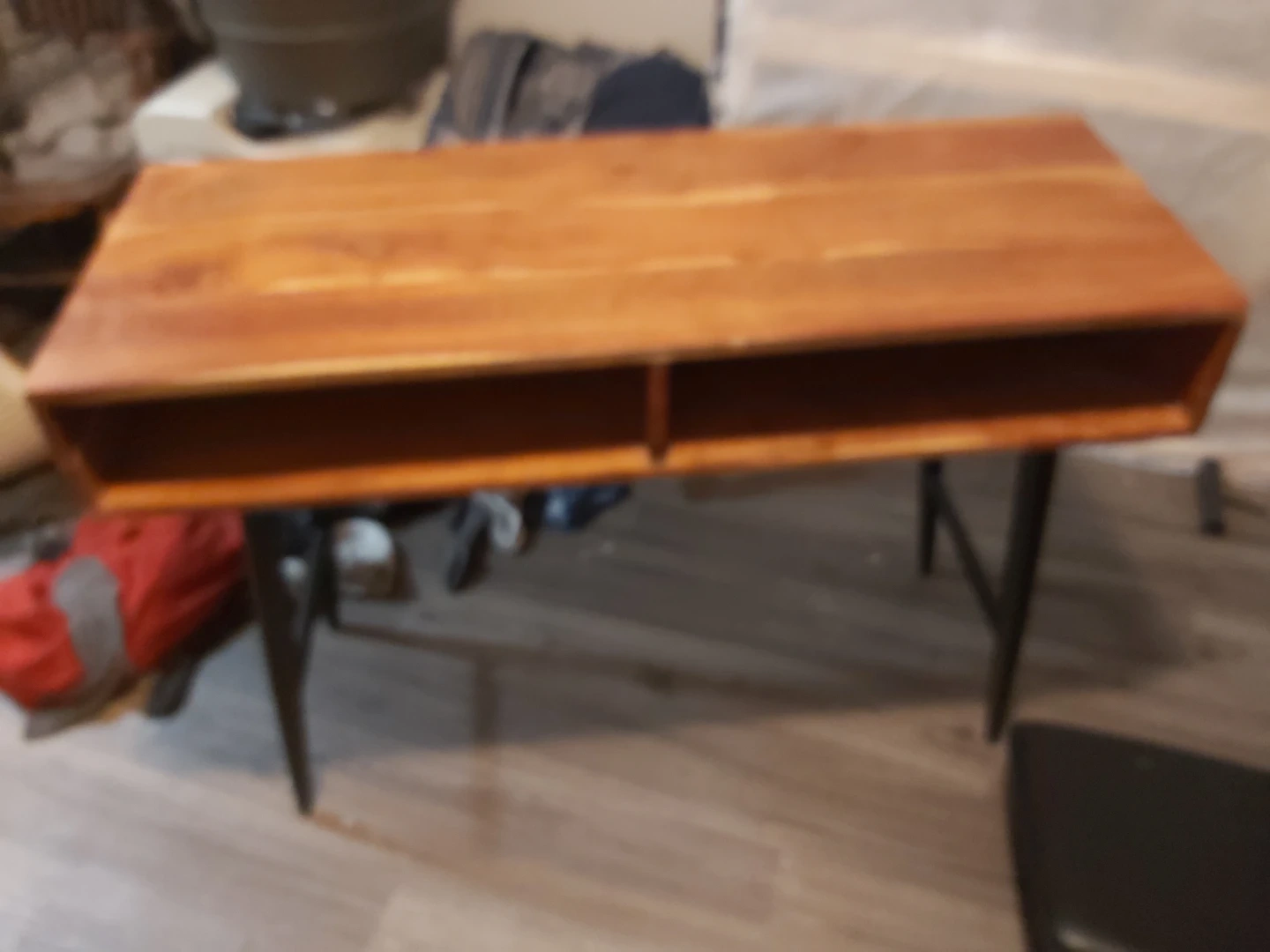 Buy & SellWooden Console Table with StorageWooden Console Table with Storage$65This console table features a warm wood top and black metal legs. It has two open storage compartments. It's suitable for entryways or living spaces.ConditionLike newWHERE TO MEETCheck LocationView MapSELLERverifiedKevinNorthland1033 reviews0 chats·0 favorites·17 viewsSEND CHAT TO SELLERHi Kevin! I’m interested in your listing.Hi Kevin! I’m interested in your listing.Get the Karrot app to chatSign In to chat