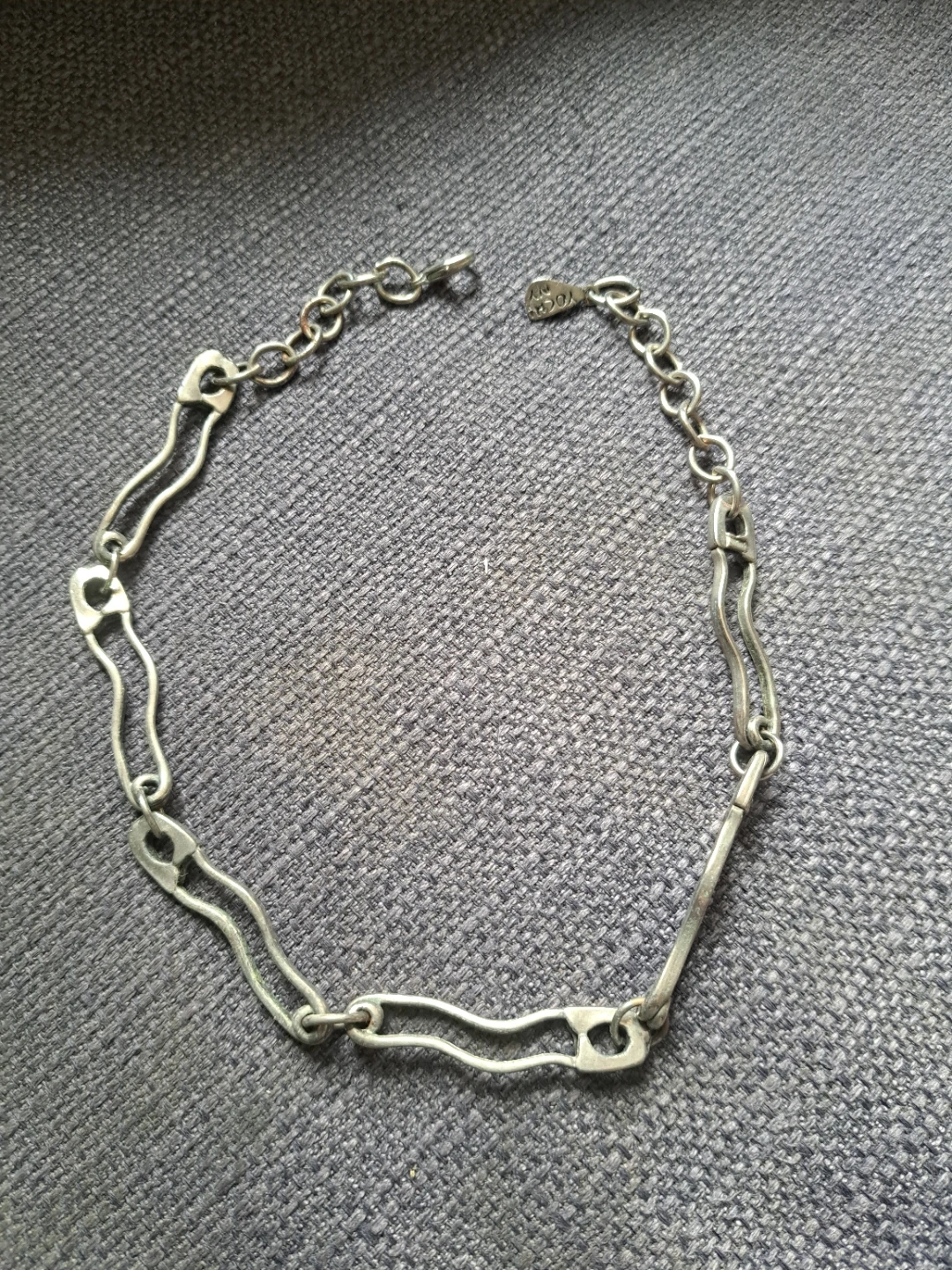 This Yochi NY features a silver-tone finish with a unique charm design. It includes a clasp closure for easy wear. The metal construction makes it a durable accessory.