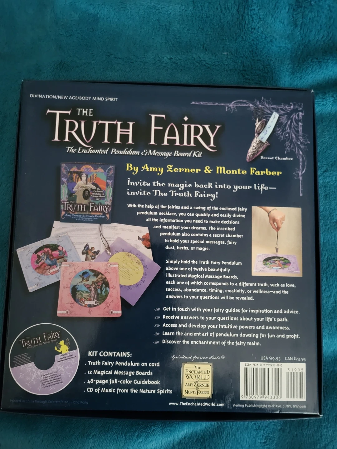 This kit includes The Truth Fairy Pendulum on a cord, 12 illustrated magical message boards, and a 48-page full-colour guidebook. It also comes with CD music from the Nature Spirits. Learn about divination, creativity, and spiritual wellness with this kit!