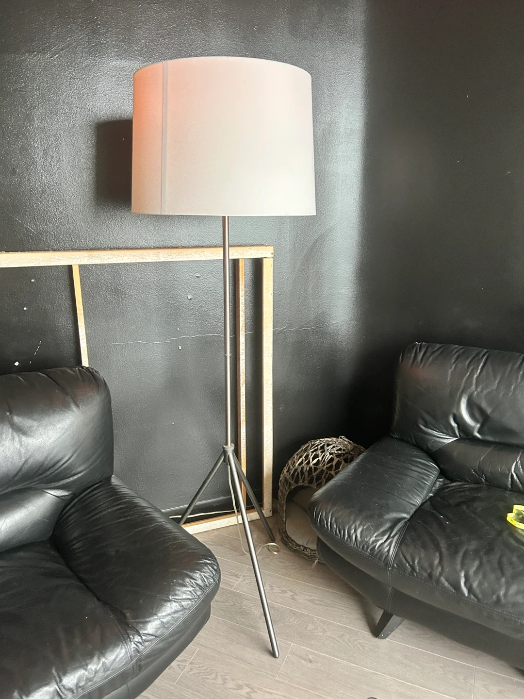 Tripod Floor Lamp with White Drum Shade and Smart Bulb