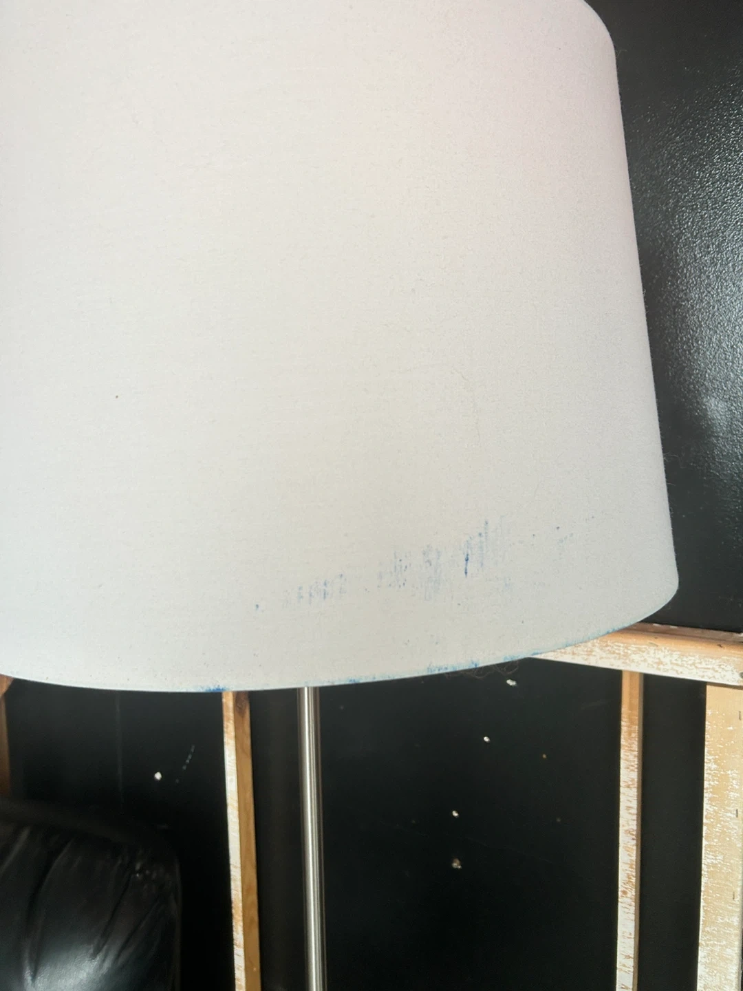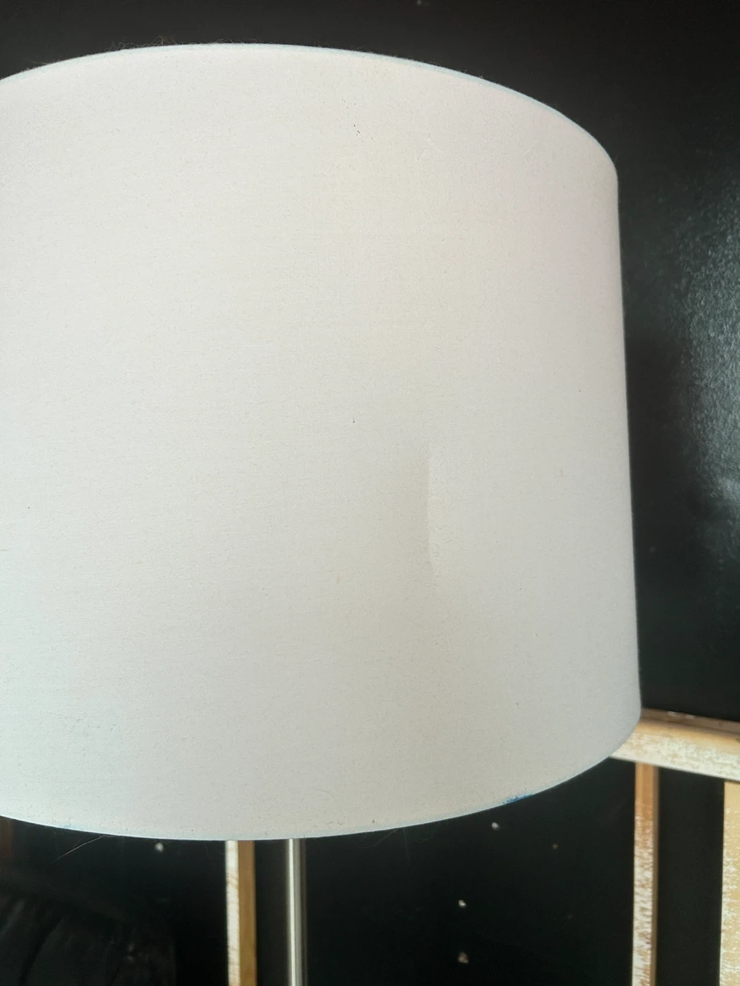 This tripod floor lamp features a simple white drum shade and a slender metal stand. It's a clean addition to any room. The lamp includes a smart LED bulb.