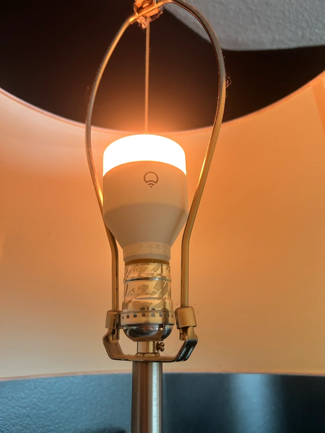 Tripod Floor Lamp with White Drum Shade and Smart Bulb