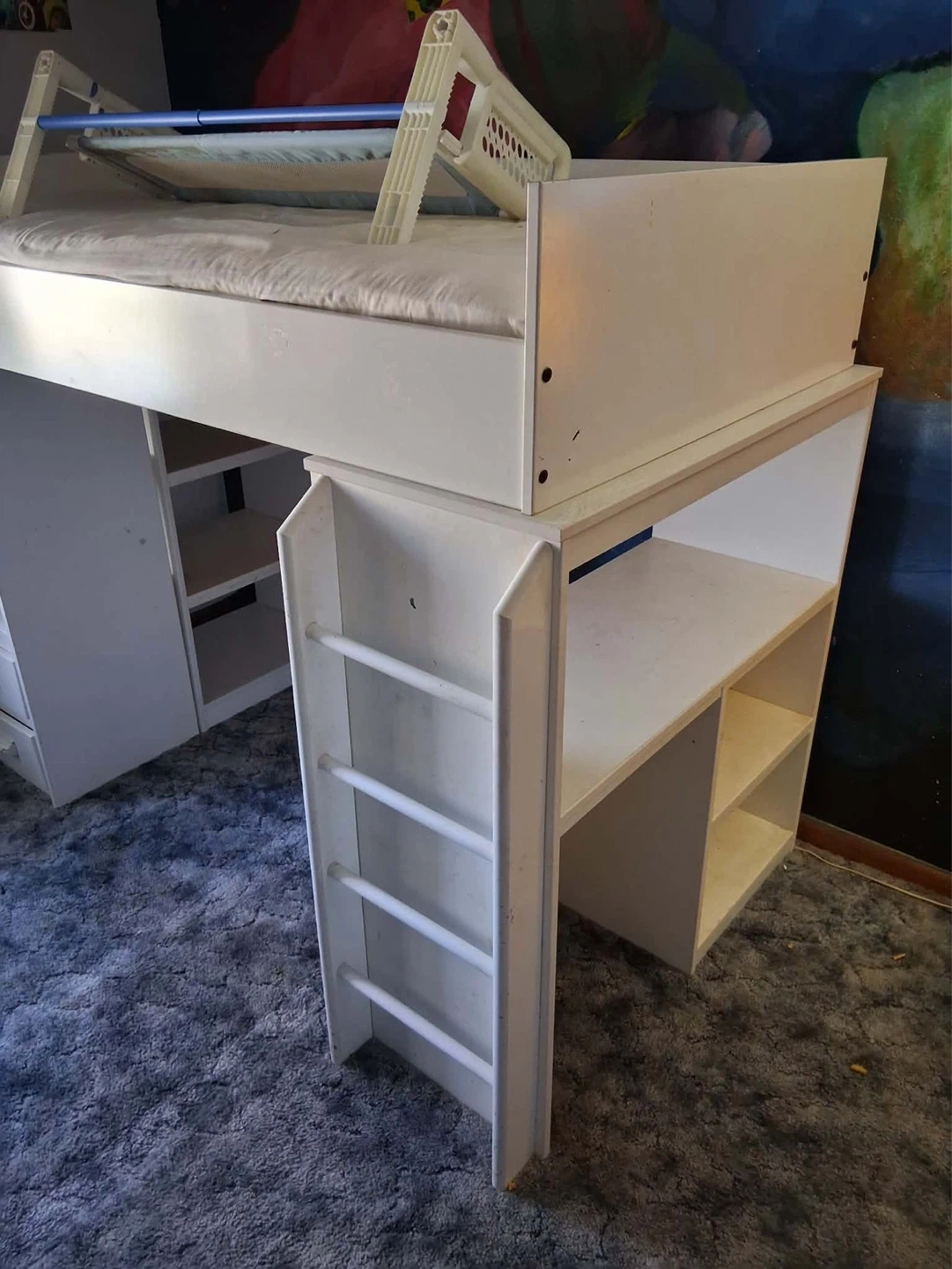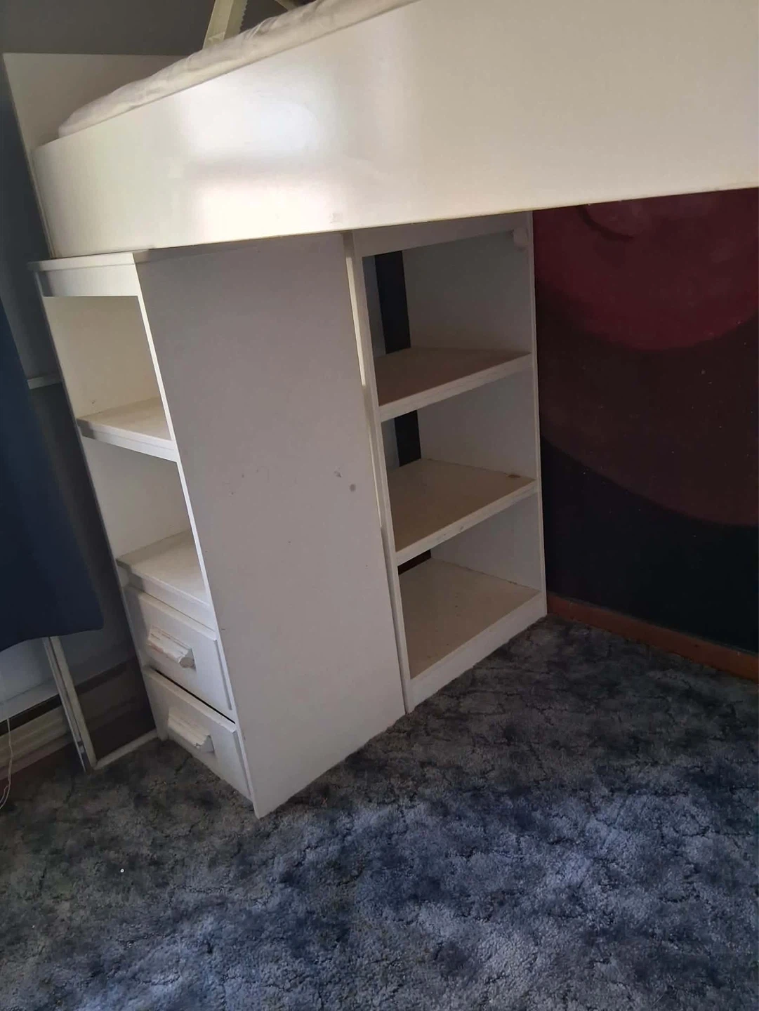 Buy & SellWhite Loft Bed with Desk and StorageWhite Loft Bed with Desk and Storage$125White loft bed with integrated desk and shelving. Includes a ladder for easy access. This bed offers a space-saving solution for bedrooms. $175 OBOConditionGoodWHERE TO MEETCheck LocationView MapSELLERverifiedRobynStonegate West600 reviews0 chats·2 favorites·101 viewsSEND CHAT TO SELLERHi Robyn! I’m interested in your listing.Hi Robyn! I’m interested in your listing.Get the Karrot app to chatSign In to chat