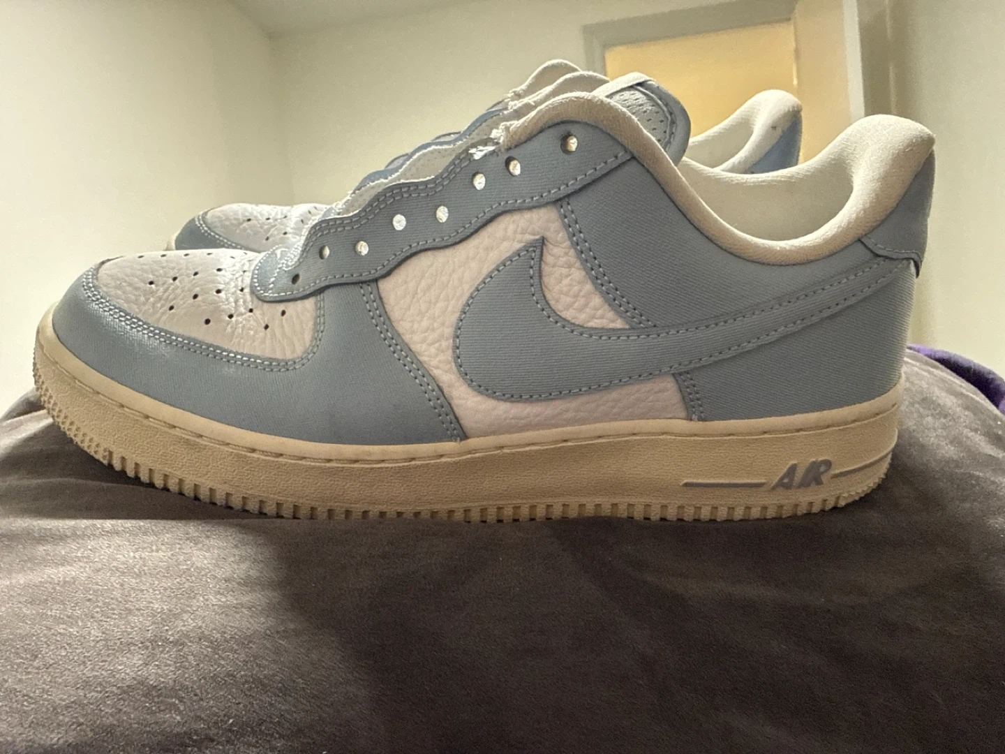 Selling a pair of Nike Air Force 1 Low sneakers in a nice blue colour. They're in good condition and ready for a new owner! I has since found laces