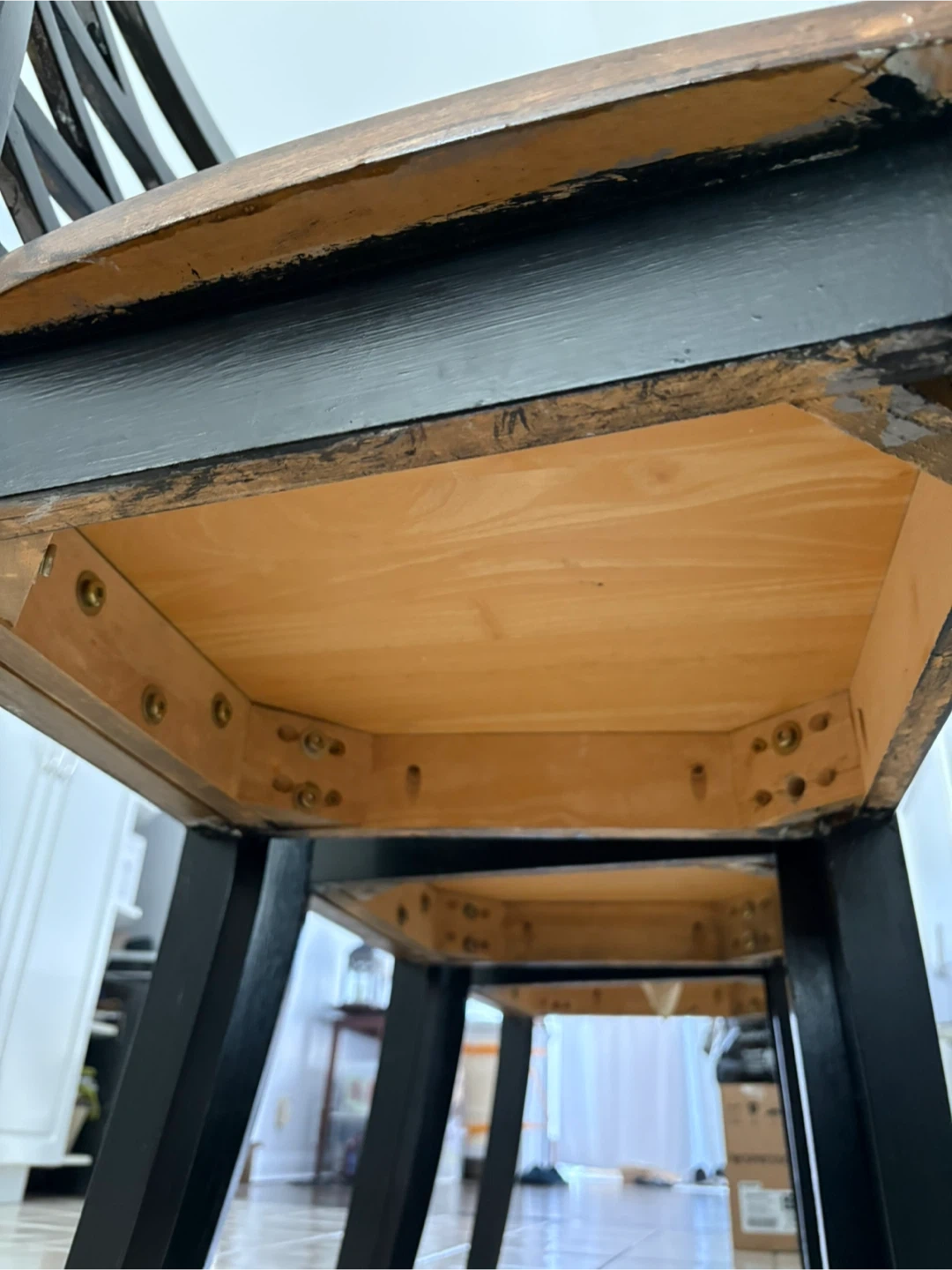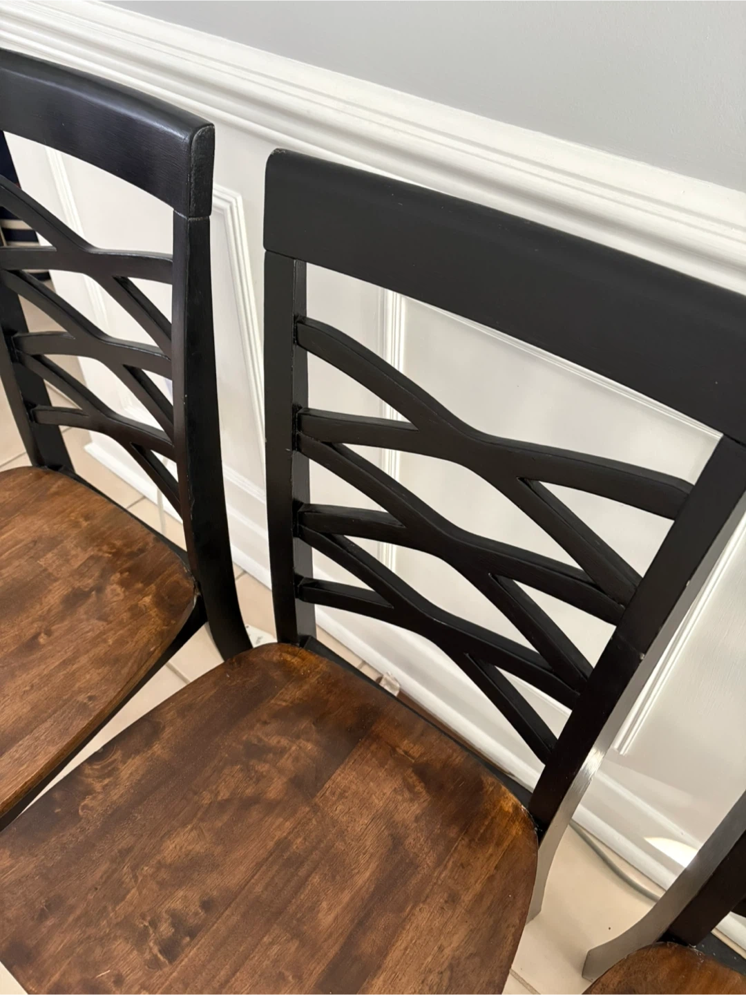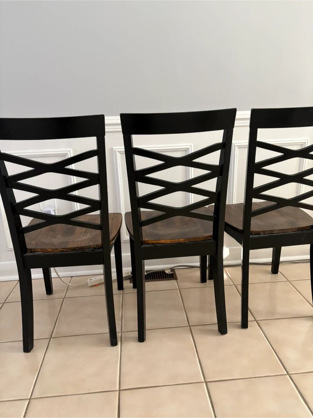 Three matching wooden dining chairs up for grabs! Black painted frame and wood stained seat. They're in good condition. Some chips and nicks on the painted parts but good for a flip project. Pick up near Bayview and Cummer.