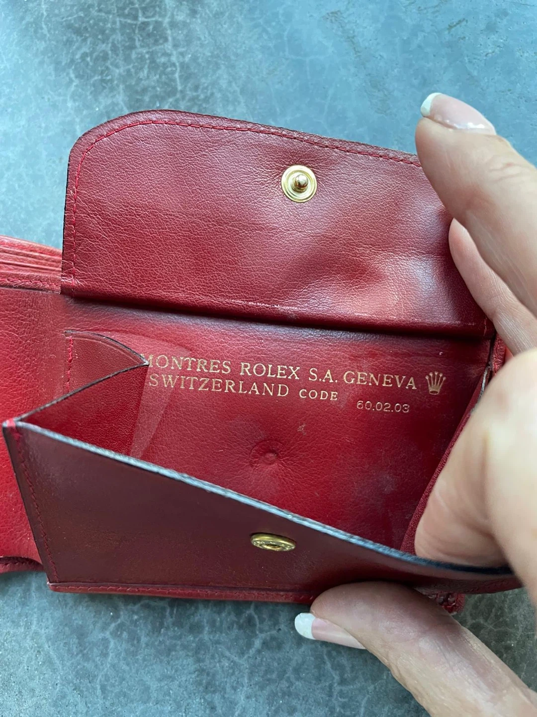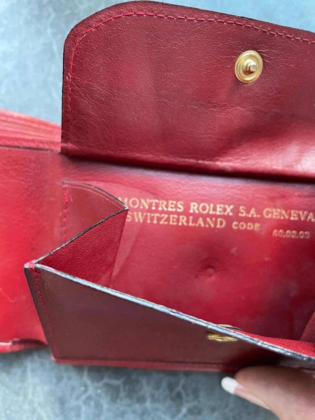 Buy & SellVintage Red Leather Rolex WalletVintage Red Leather Rolex Wallet$55This is a red leather bifold wallet. It's made in Switzerland. It's a nice compact size for carrying your essentials.BrandRolexWHERE TO MEETCheck LocationView MapSELLERMichelleDelbrook100 reviews0 chats·0 favorites·59 viewsSEND CHAT TO SELLERHi Michelle! I’m interested in your listing.Hi Michelle! I’m interested in your listing.Get the Karrot app to chatSign In to chat