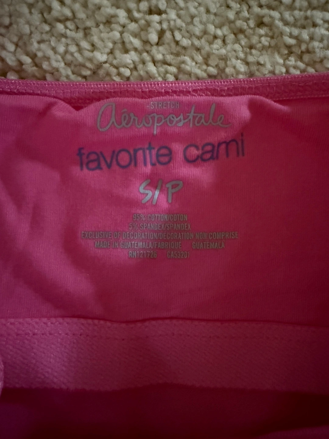 Pink cami tank top. Spaghetti straps. V-neckline. Brand new with tags. Made of cotton and spandex. It would be a perfect addition to any wardrobe for a layered look.