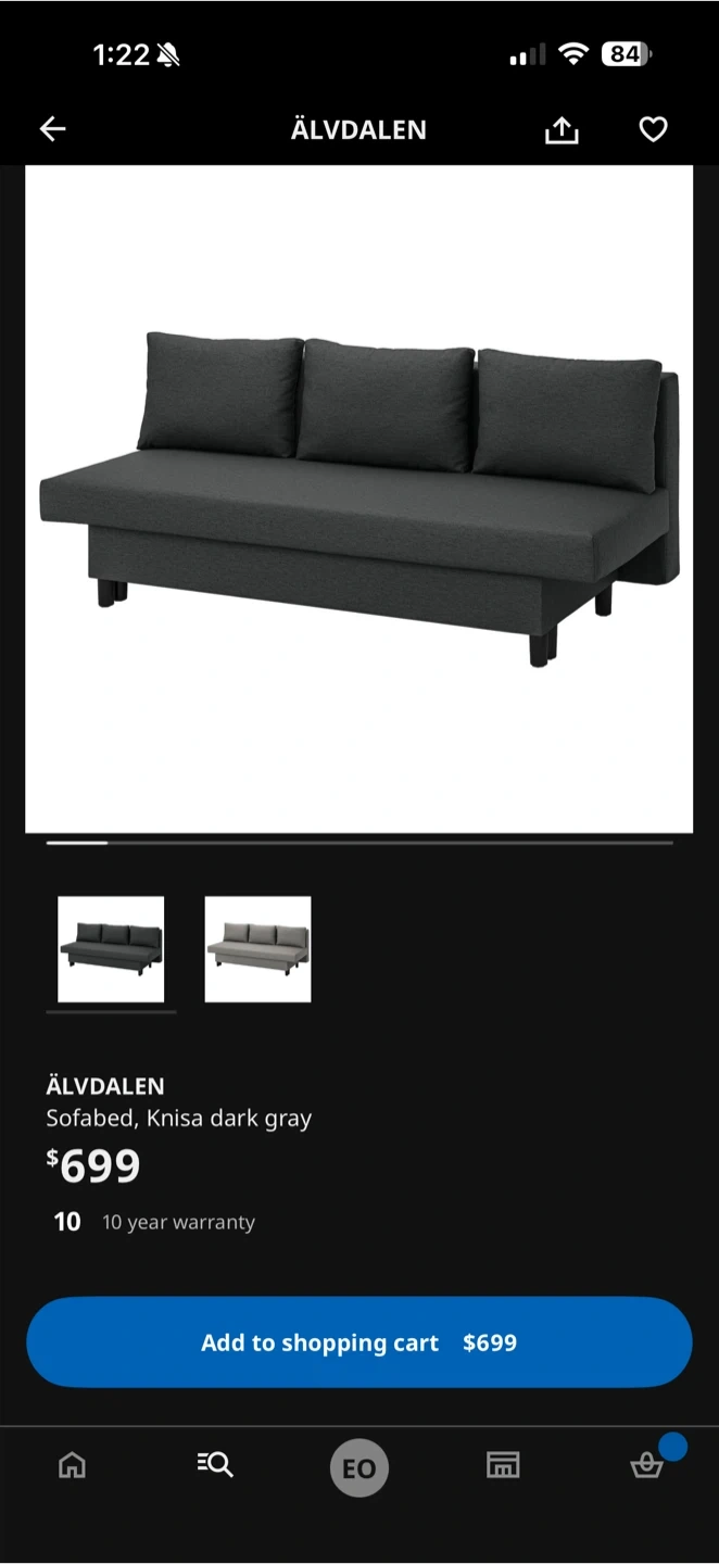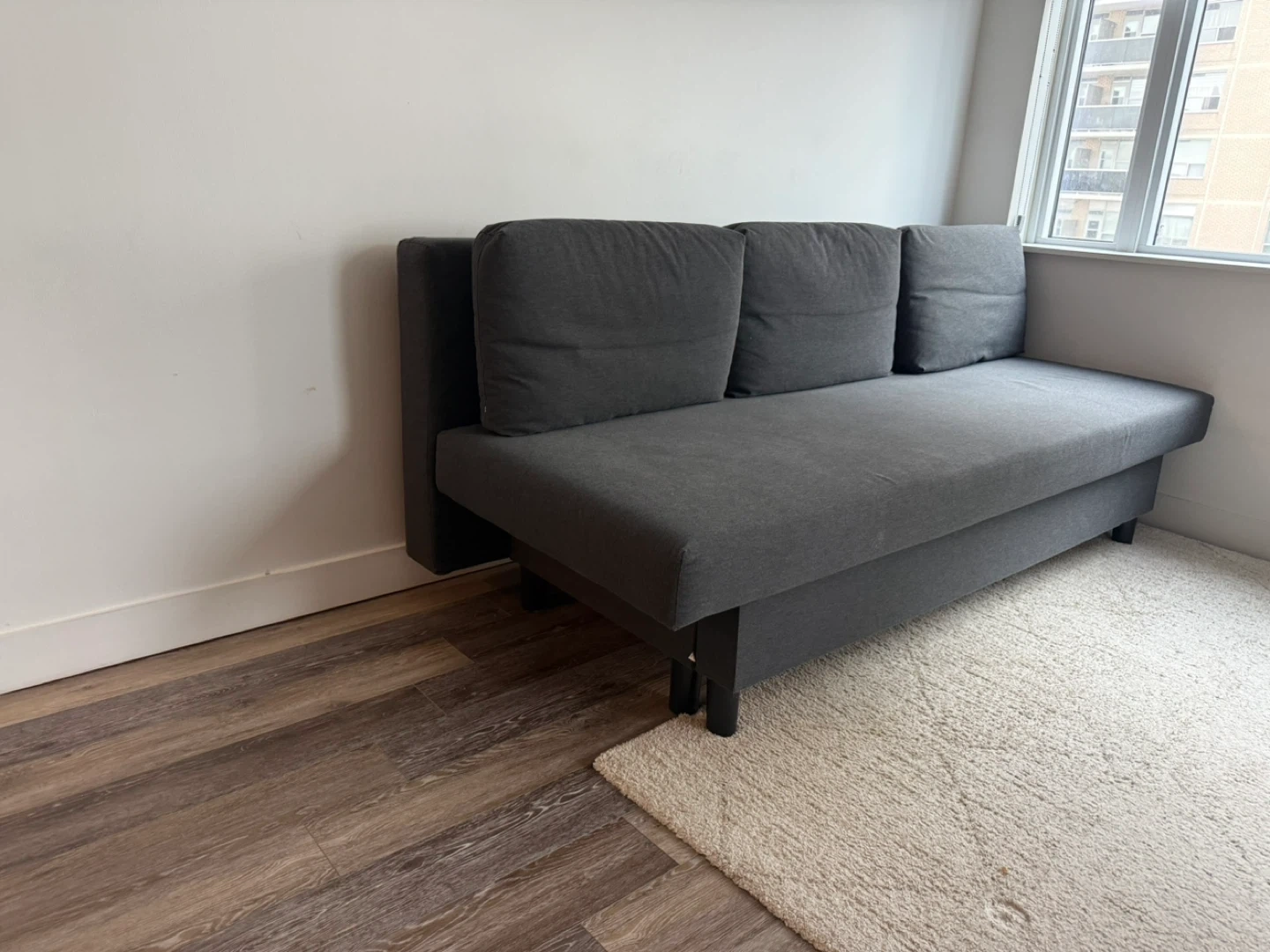 Selling a dark gray IKEA ÄLVDALEN sofa bed (Knisa dark gray). It’s perfect for small spaces, easily converting from sofa to double bed for guests.