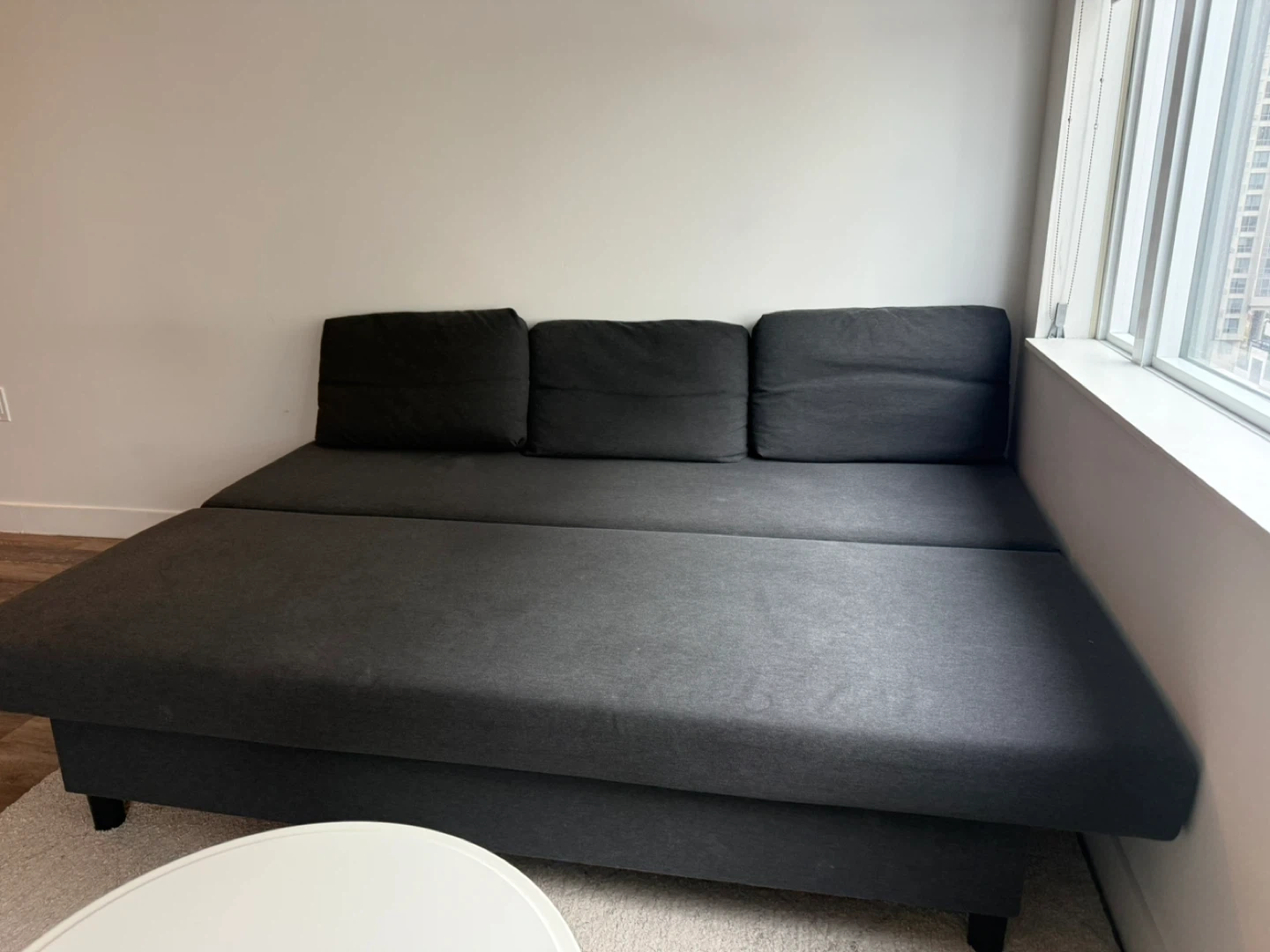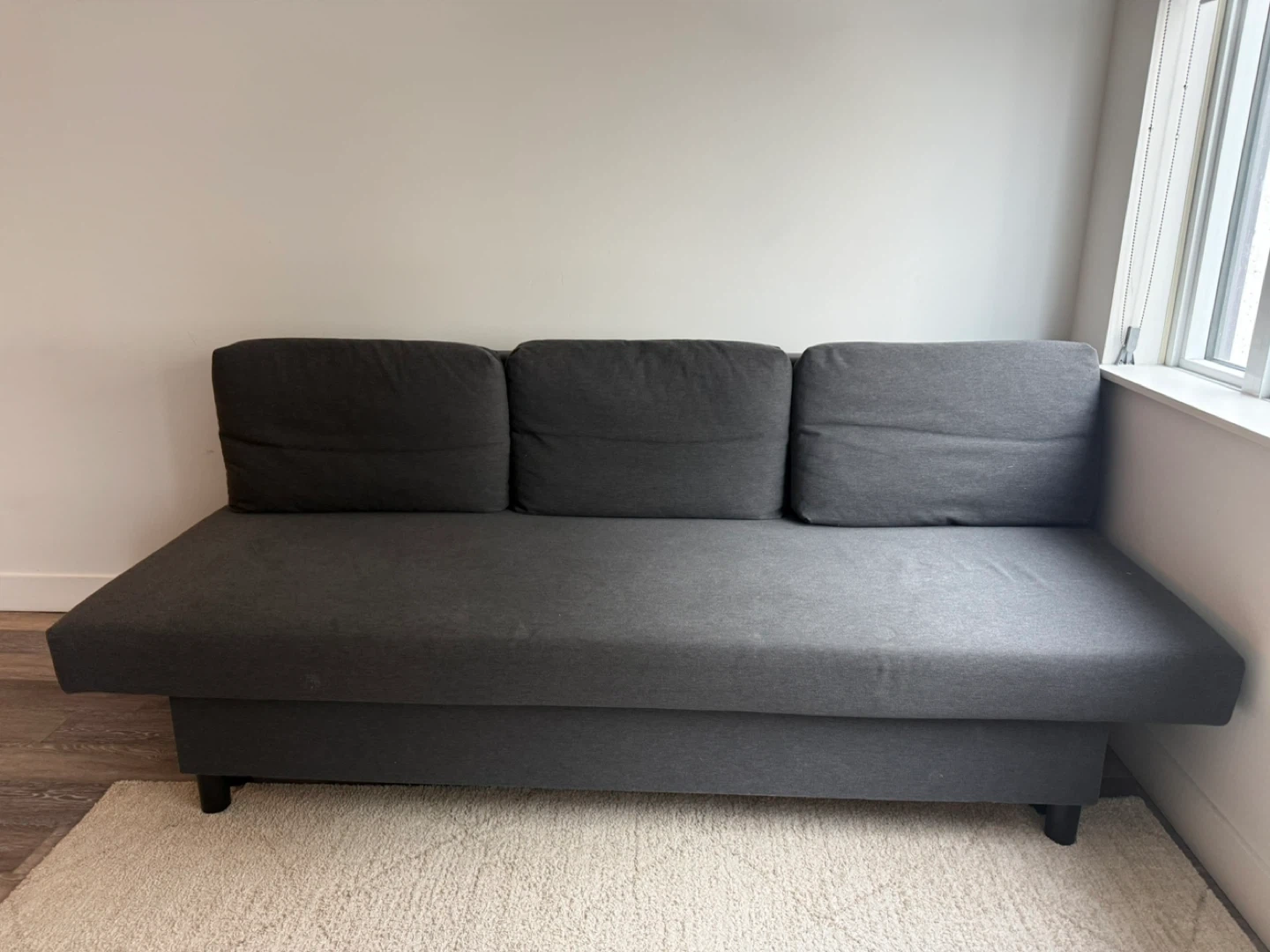 Selling a dark gray IKEA ÄLVDALEN sofa bed (Knisa dark gray). It’s perfect for small spaces, easily converting from sofa to double bed for guests.