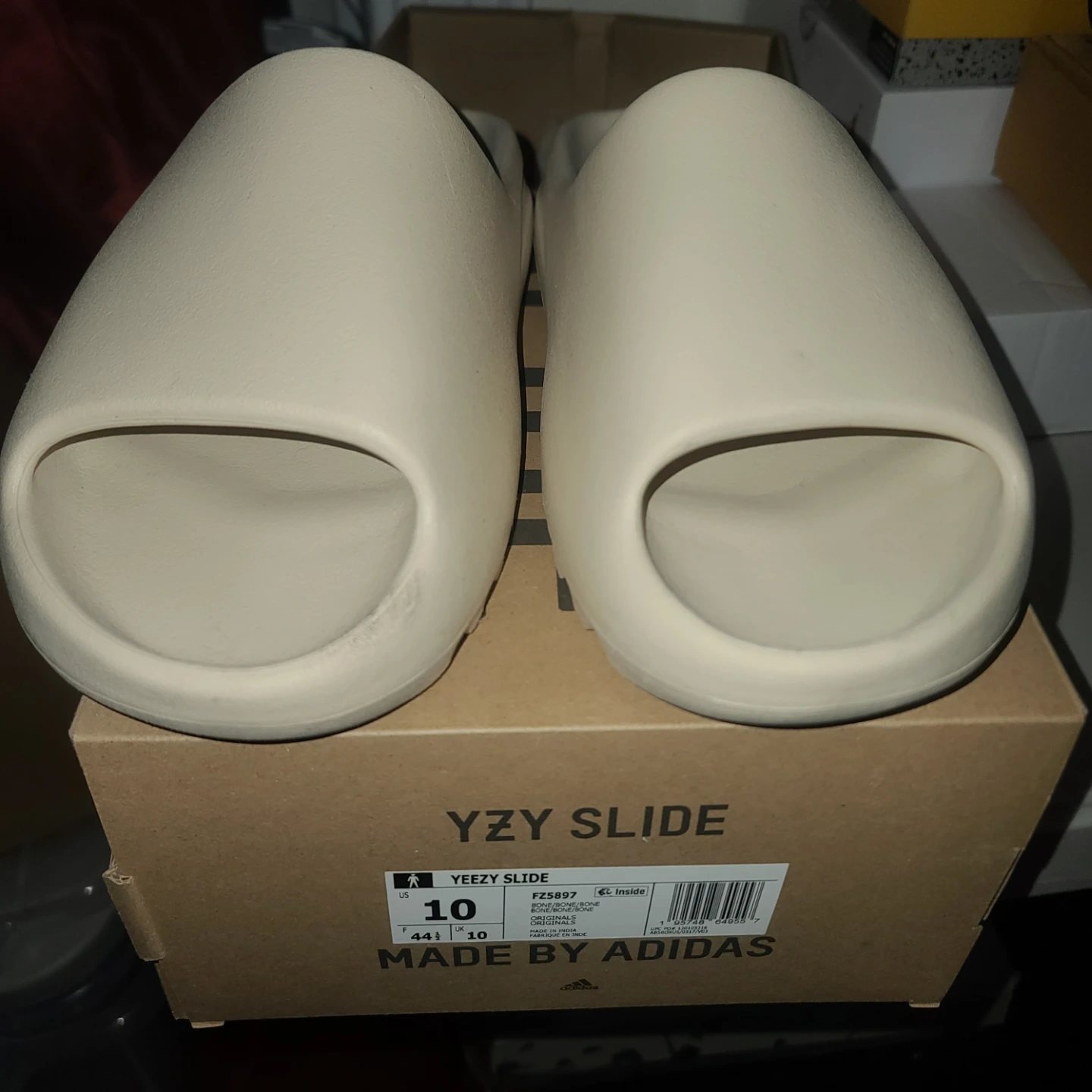 Buy & SellAdidas Yeezy Slide "Bone" Size 10Adidas Yeezy Slide "Bone" Size 10$225Adidas Yeezy Slide in the "Bone" colorway. Size US 10. Made with injected EVA foam for comfort. Includes original box.ConditionLike newSize10BrandAdidasWHERE TO MEETcrown chickenView MapSELLERverifiedJiggSouth Ozone Park600 reviews1 chats·0 favorites·26 viewsSEND CHAT TO SELLERHi Jigg! I’m interested in your listing.Hi Jigg! I’m interested in your listing.Get the Karrot app to chatSign In to chat
