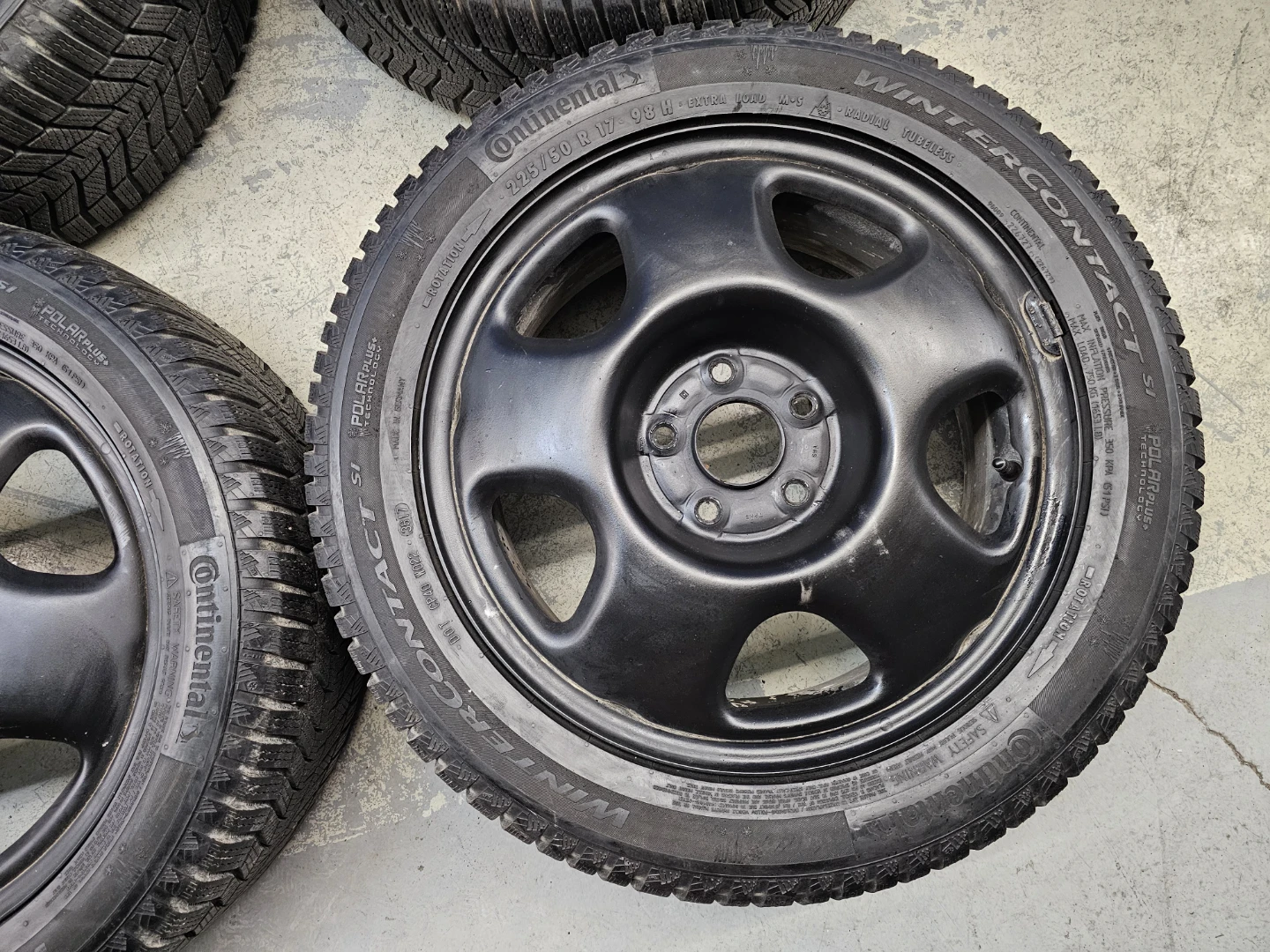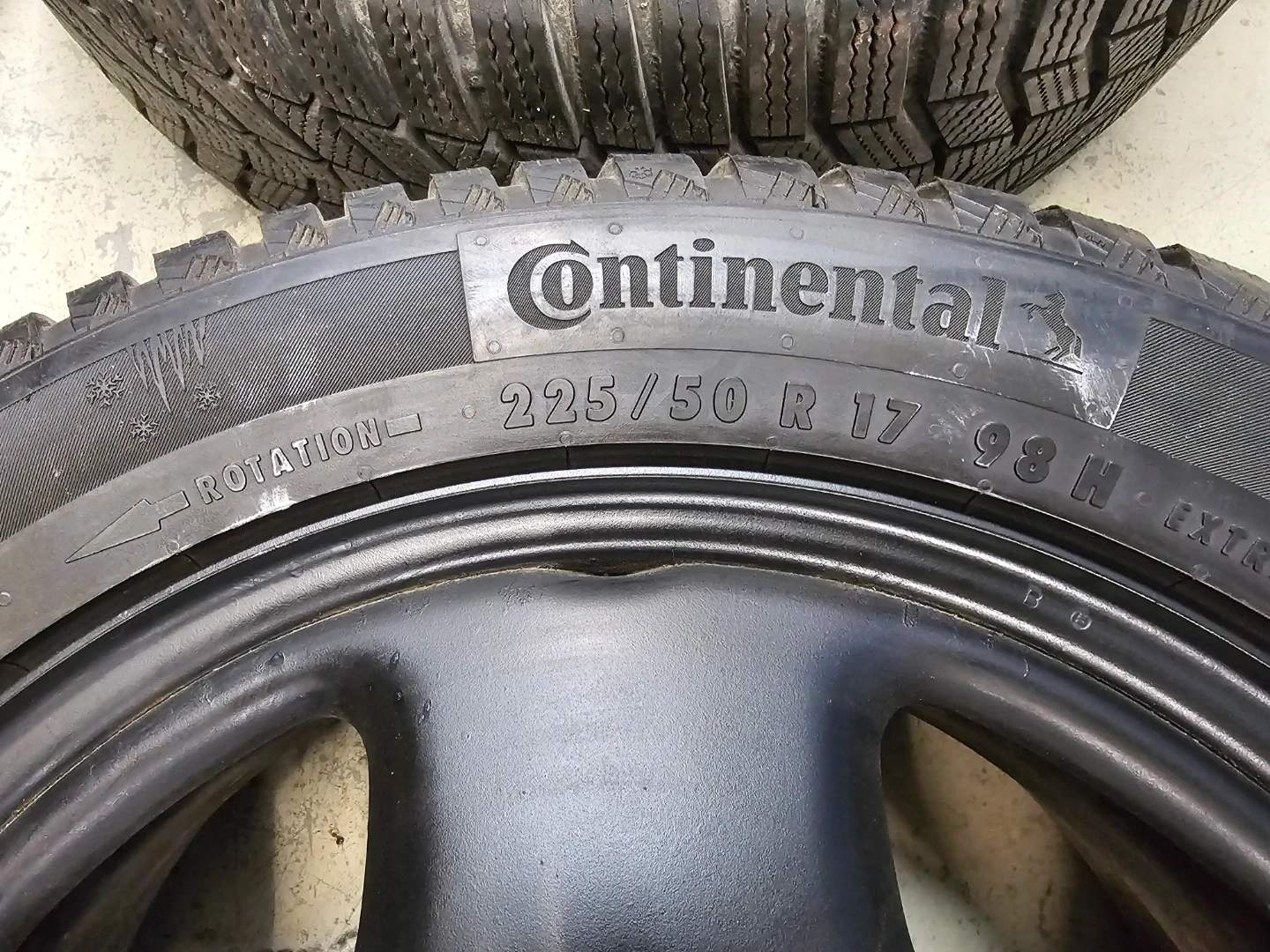 Set of 4 17" continental winter tires on steel rims used on Honda ACCORD 225/50 R17. Rims and tires are in good shape, no bend, no cracks. Lots of thread left