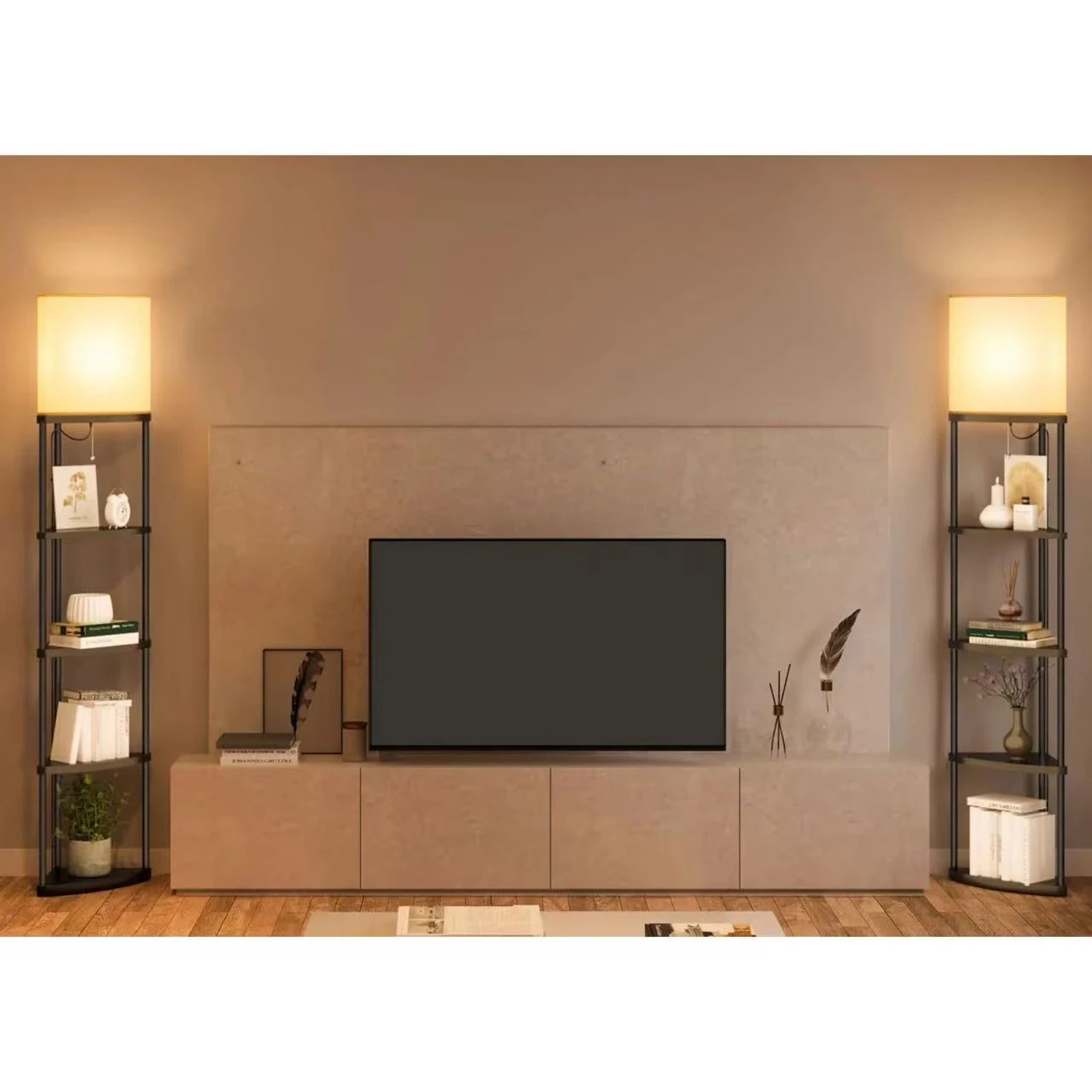 Corner Floor Lamp with Shelves