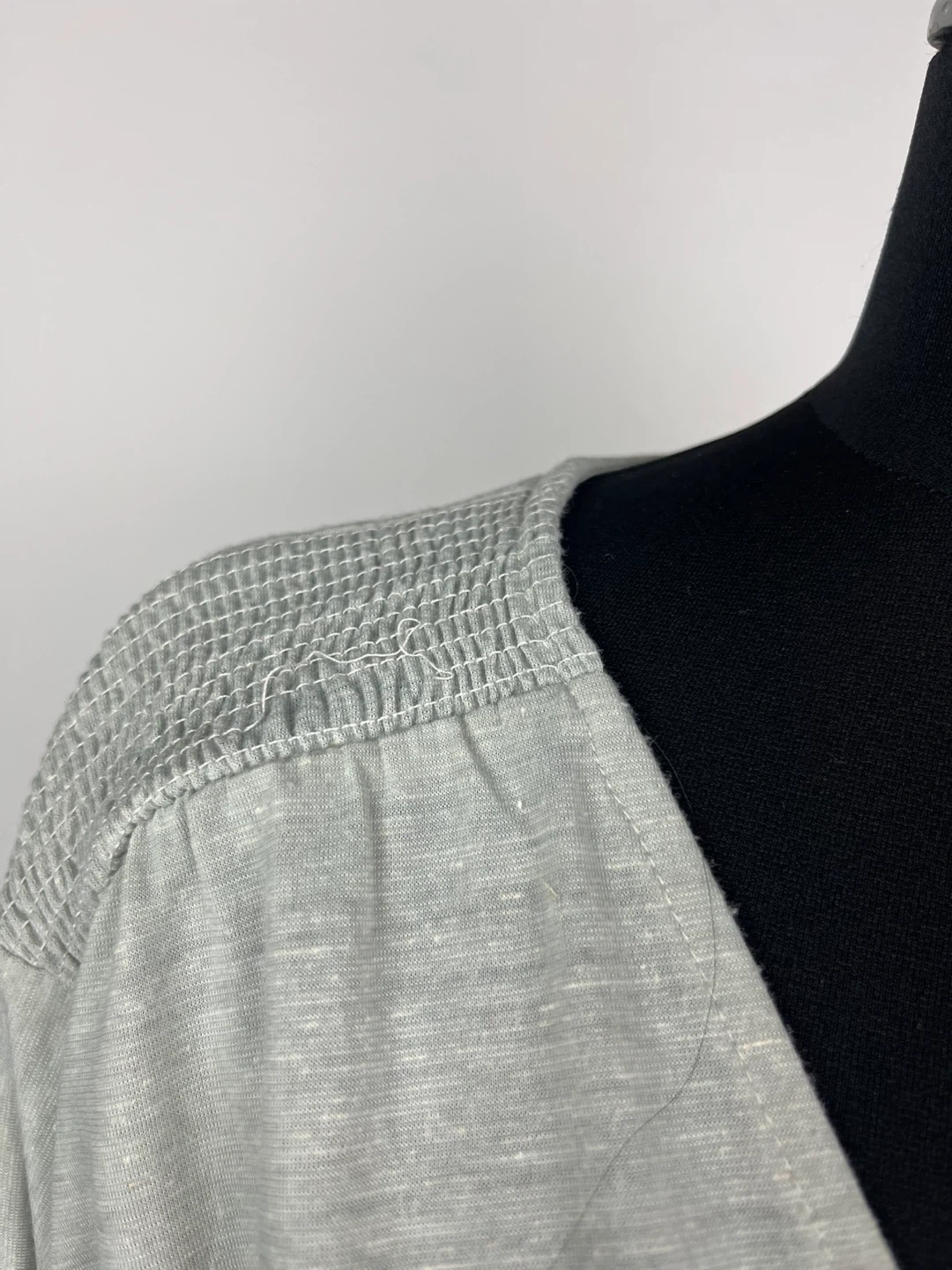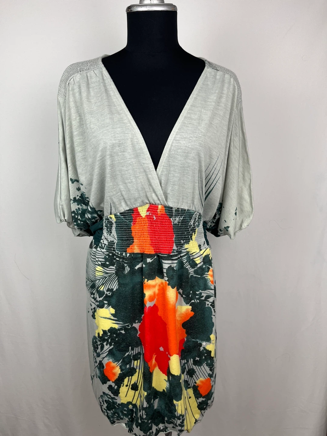 This is a cute grey dress with a floral design. It has a V-neck and a tie at the back. It's in great condition and ready for a new owner! Pick up at Brow of the Hill near 10th and Royal, New Westminster. Check out my other listings!
