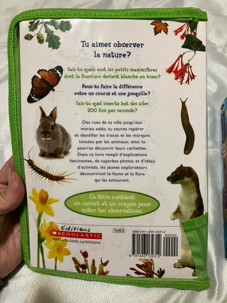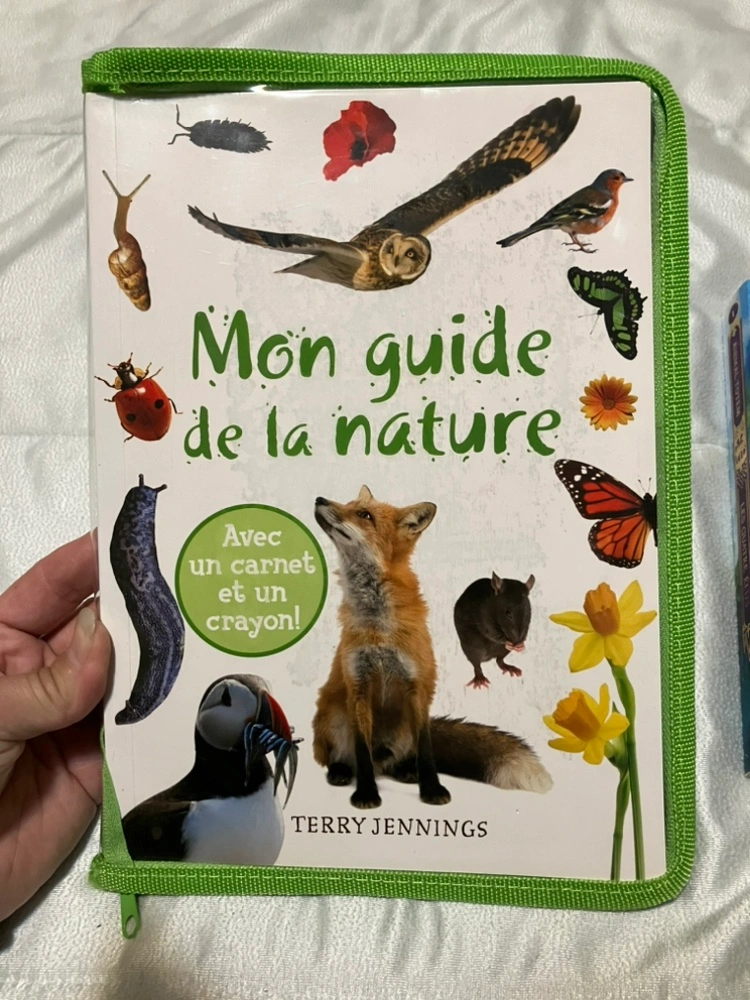 Two French Books. One is an educational book of nature. It zips up and protects the book.