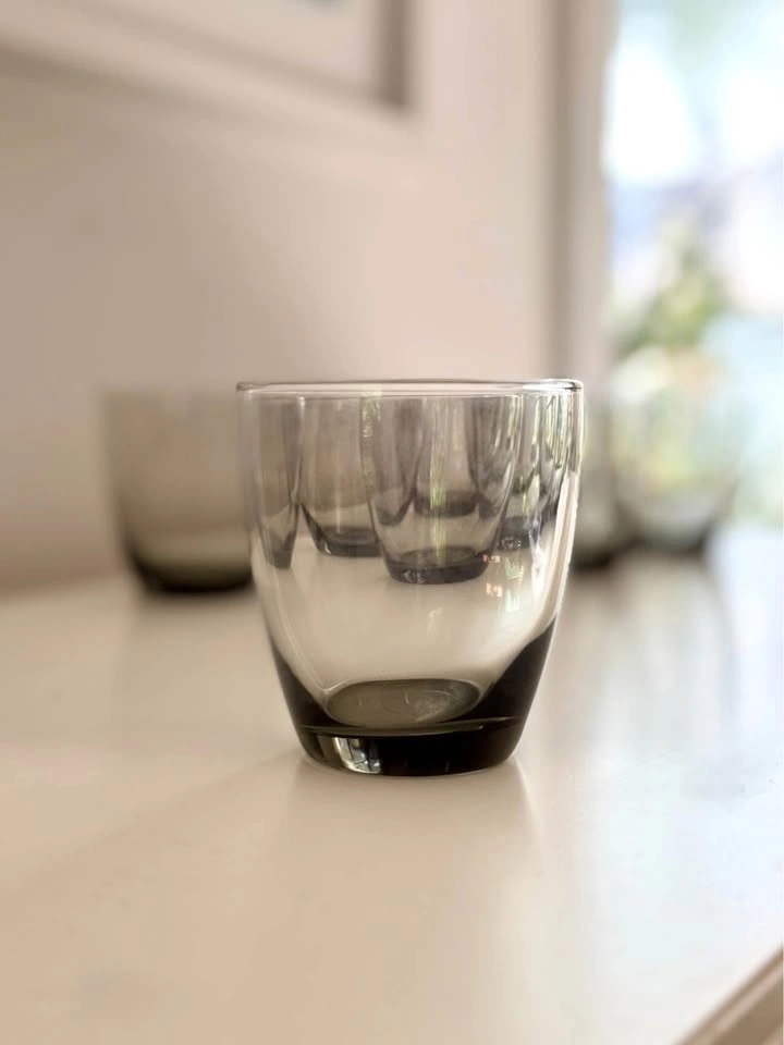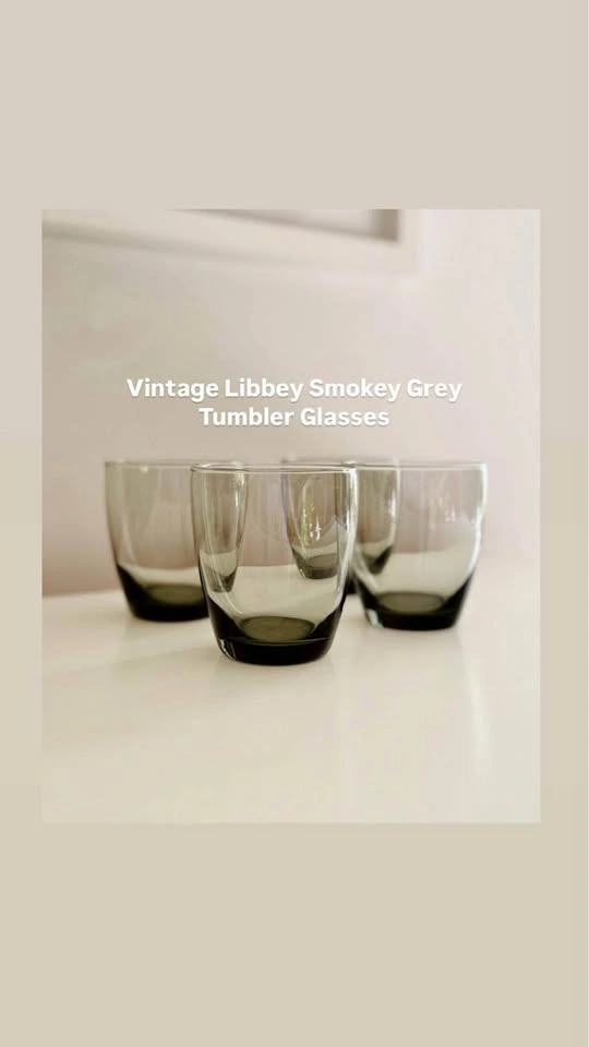 Set of 4 Vintage Smokey Gray Tumbler Libbey Glasses, Double Old Fashioned Rock Glasses Gray Retro Glassware. Low ball glasses. $35 for set of 4. $65 for set of 8. Like new condition. Has Libbey marking with cursive ‘L’ on bottom of glass. Porch pick up Christie St and St. Clair West Ave. (10 min walk from St. Clair WEST Subway station). Toronto. Retro bar ware Madmen Drink ware Vintage Drinking glasses Whiskey glasses