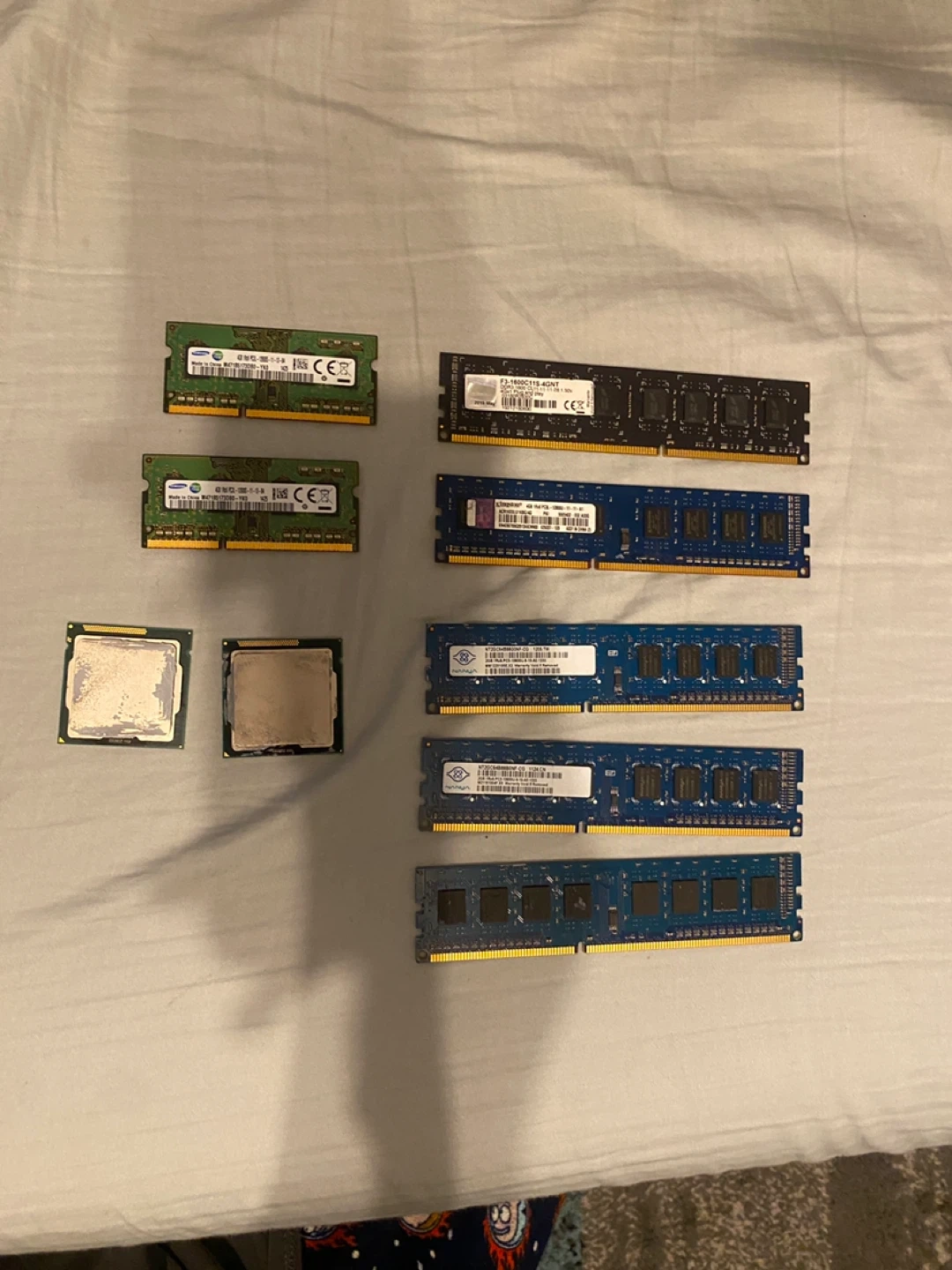 Various RAM modules including Kingston, Samsung, and others. Specifications vary by module.