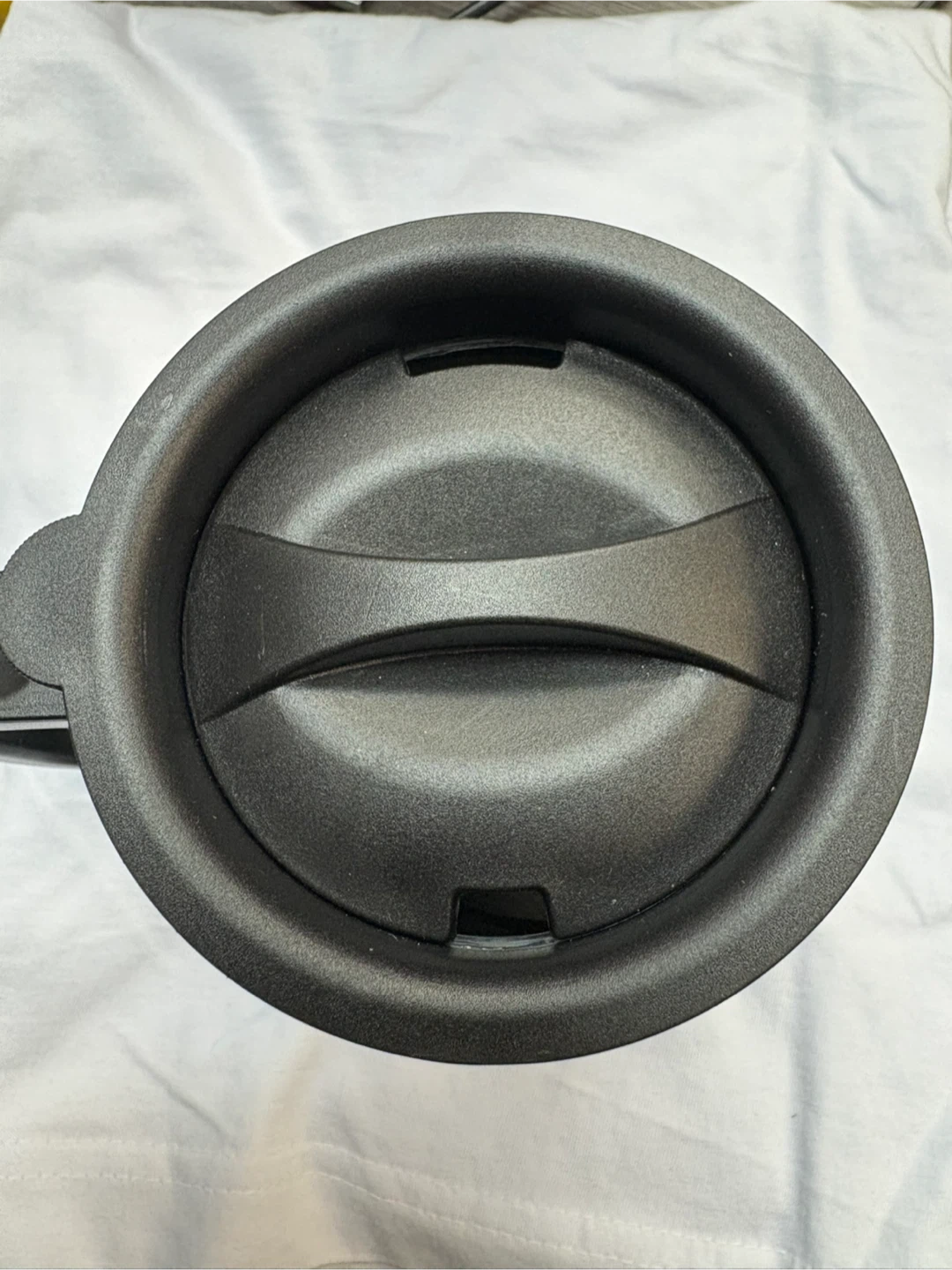 White travel mug featuring the iconic red Jumpman logo. It has a comfortable black handle and a black lid. This mug is perfect for keeping your drinks hot or cold on the go!