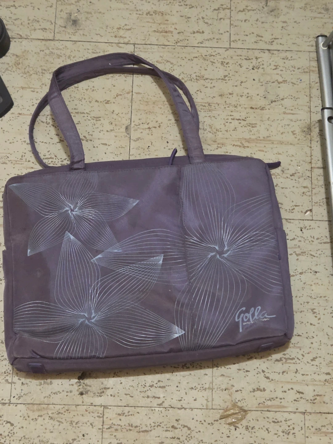 This Golla tote bag is a lovely purple colour with a stylish floral design. It's made from durable fabric and features comfortable carrying handles. Great for everyday use!