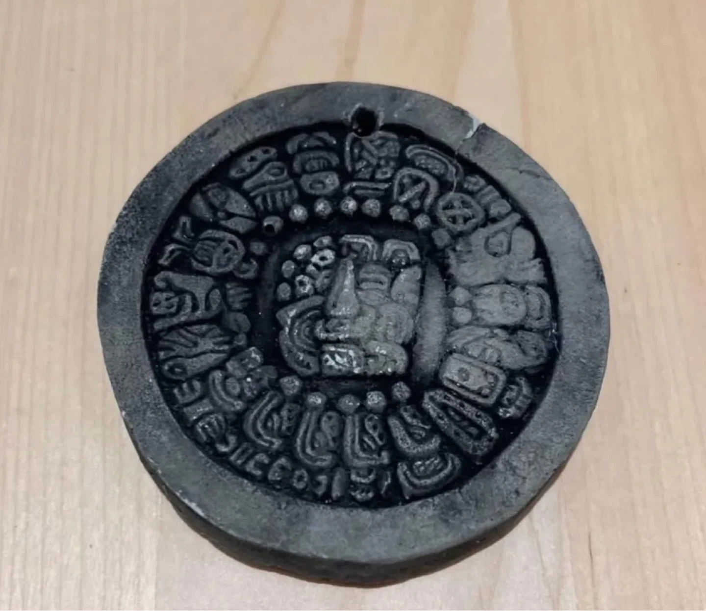 Keywords: Mayan calendar, Aztec sun stone, Honduras decor, tribal wall art, carved stone look, cultural decor, boho home, travel souvenir, small wall decor