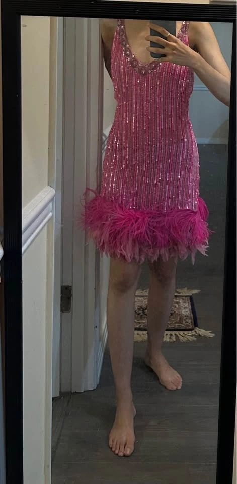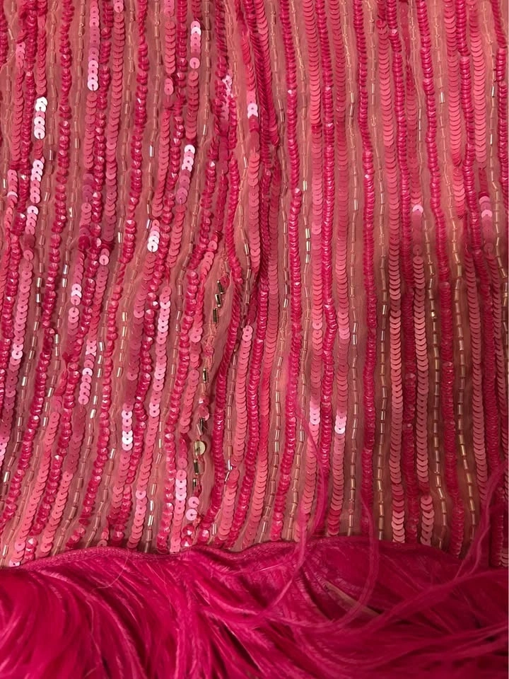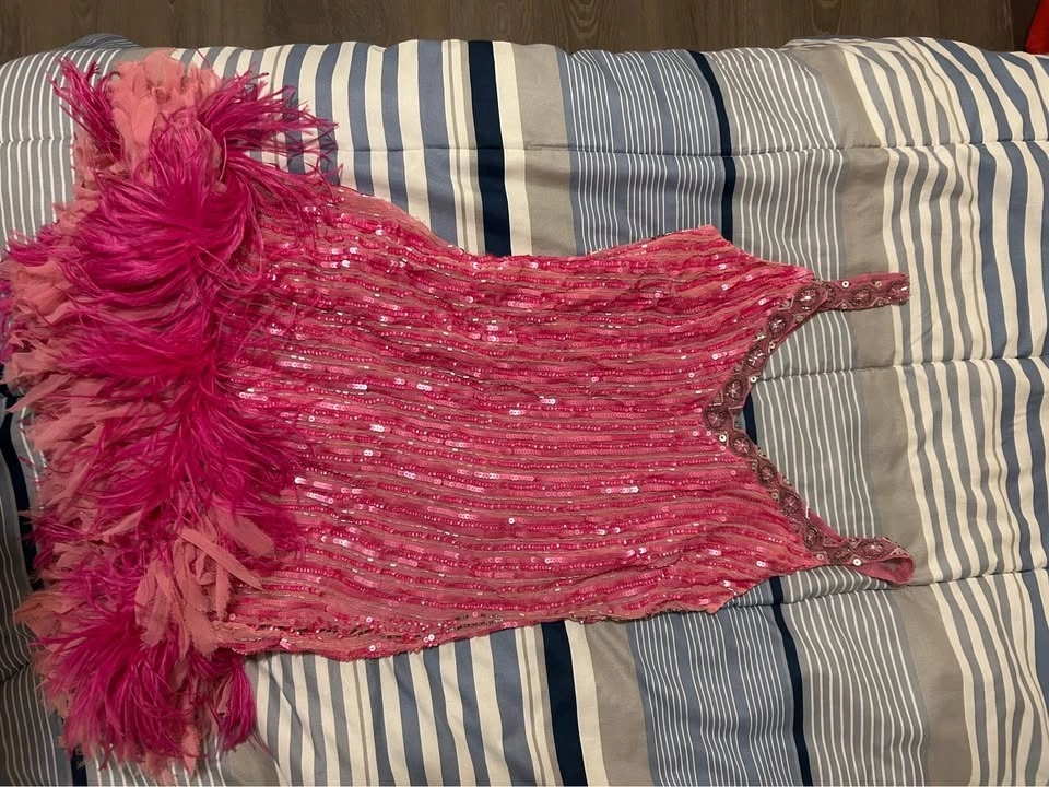 On the bottom back of the dress, some of the beading has come loose but it is not noticeable when wearing it. I have attached a photo of that bit.