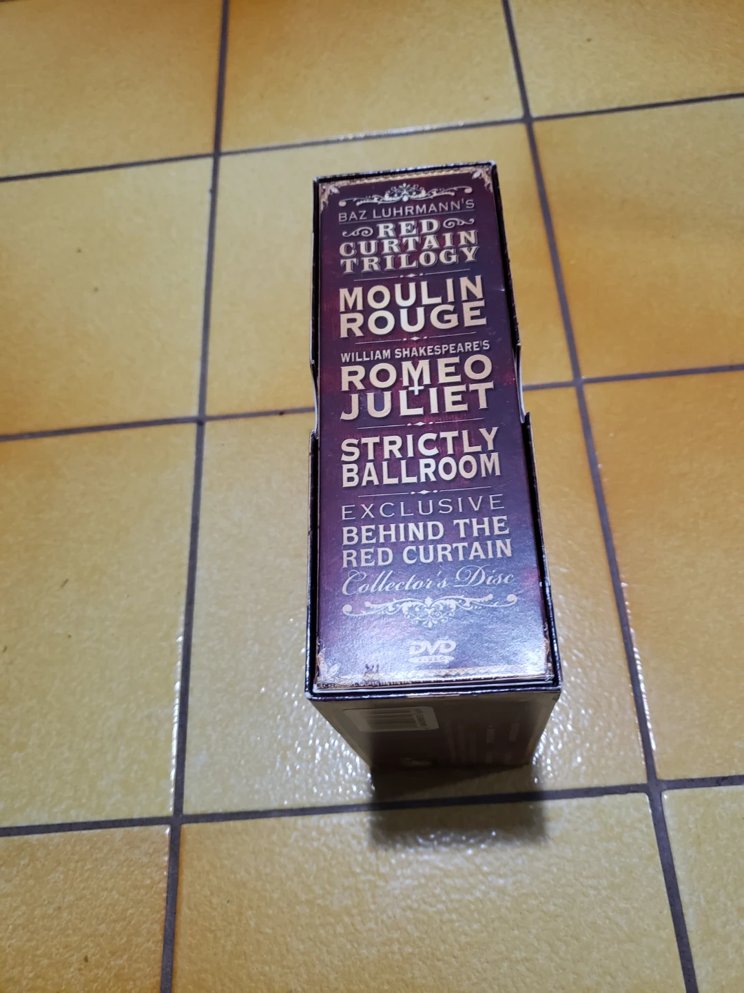 This DVD set includes Baz Luhrmann's Red Curtain Trilogy, featuring Moulin Rouge, William Shakespeare's Romeo Juliet, and Strictly Ballroom. It's a collector's disc edition. This collection is for fans of Baz Luhrmann's distinctive filmmaking style.