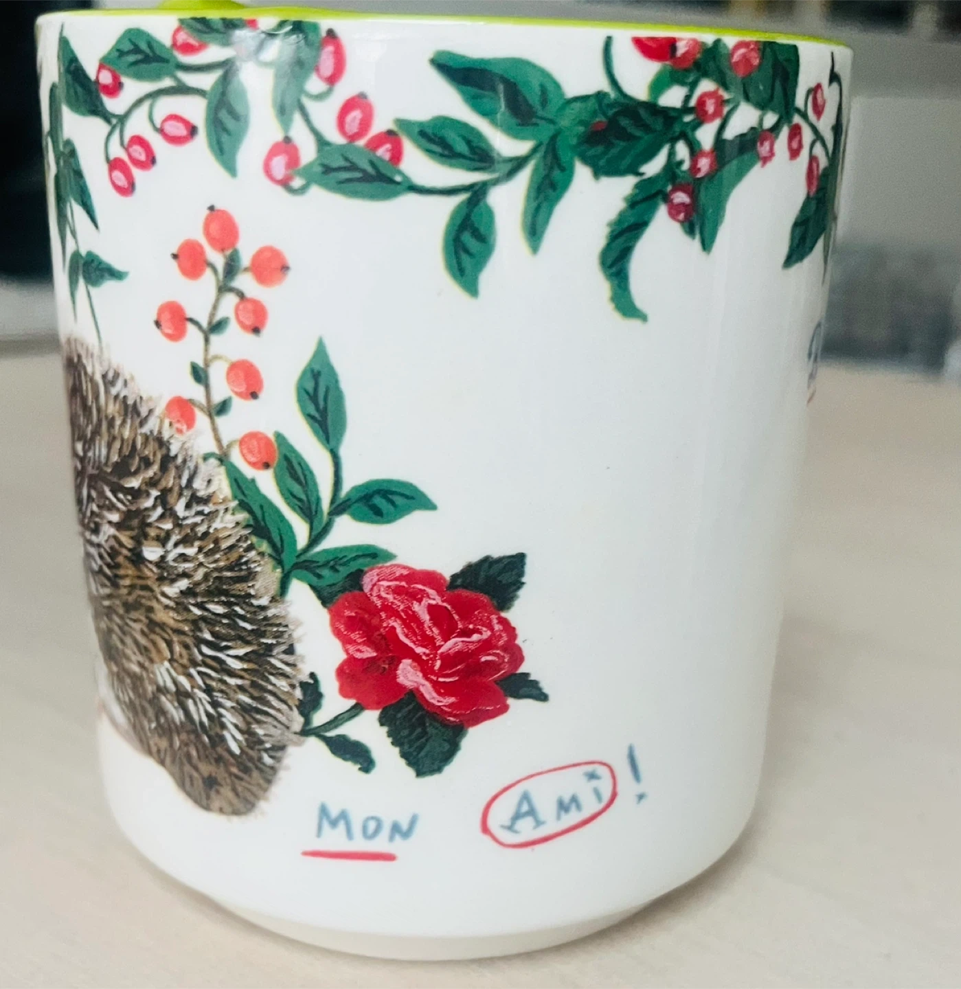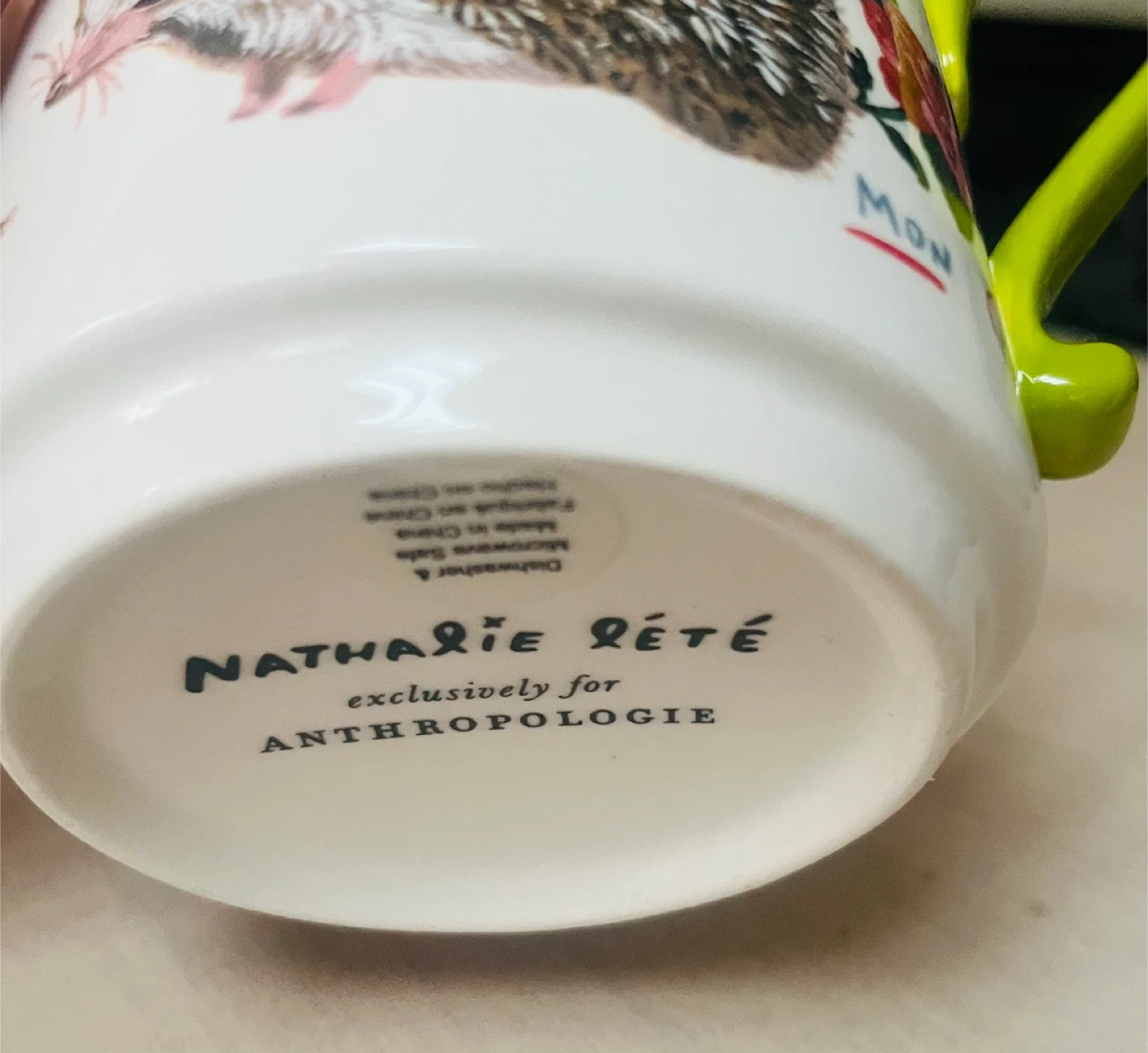 This charming mug features a hedgehog design exclusively for Anthropologie, created by Nathalie Lété. It's dishwasher and microwave safe. A delightful addition to any kitchen!