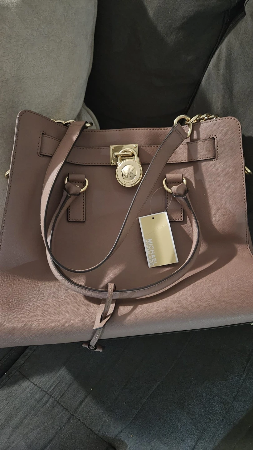 This is a Michael Kors tote bag. It's a stylish accessory made from textured leather. The bag comes with both top handles and a shoulder strap for versatility. It's a great everyday bag!