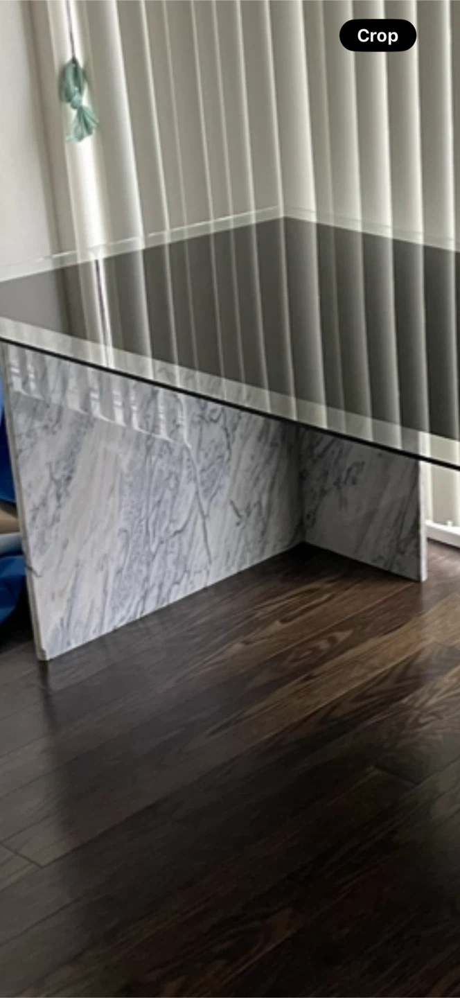 Rare opportunity to own a statement Arabescato Vagli marble desk with custom mitered waterfall legs and a 6ft floating glass top. Acquired in 2023 from a prominent attorney’s estate, this is an architectural centerpiece in a stunning charcoal and white grain.