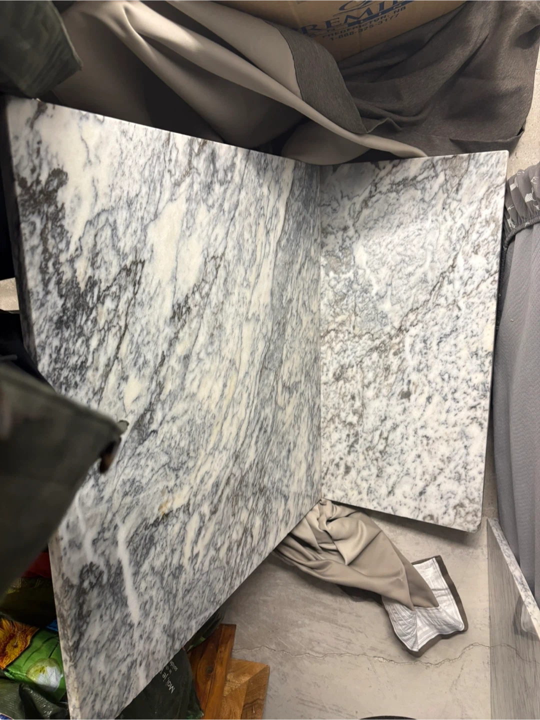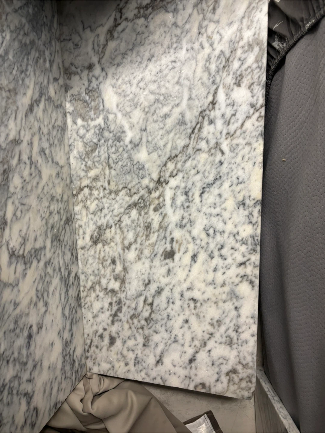 Note the beautiful organic variance between the two supports. The left features a dramatic, high-movement Vagli grain, while the right offers a more serene, airy selection of the same stone. This mismatch is the hallmark of custom, non-mass-produced furniture and highlights the unique natural origin of the Arabescato Vagli marble