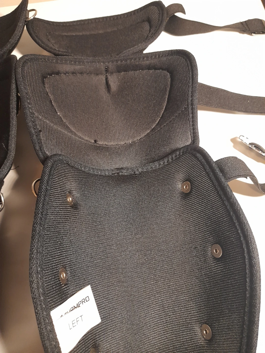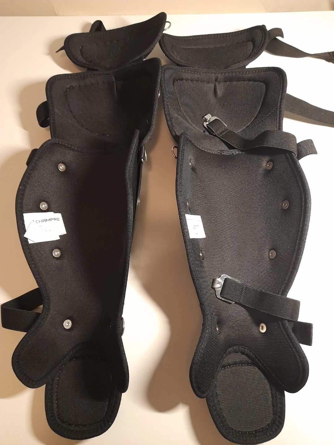 These black shin guards are from Champro. They are adjustable and have a padded interior for comfort and protection. Comes as a pair. 14.5" Length.